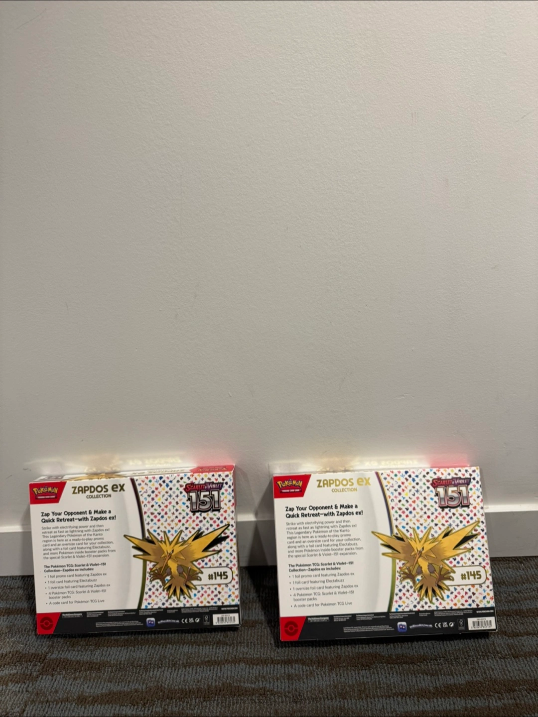 Buy & SellPokemon 151 zapdos ex boxPokemon 151 zapdos ex box$80Pokemon 151 zapdos ex box Brand new sealed, multiple available Pickup in VancouverConditionNewWHERE TO MEETHomeView MapSELLERKevinMetrotown595 reviews1 chats·1 favorites·16 viewsSEND CHAT TO SELLERHi Kevin! I’m interested in your listing.Hi Kevin! I’m interested in your listing.Get the Karrot app to chatSign In to chat