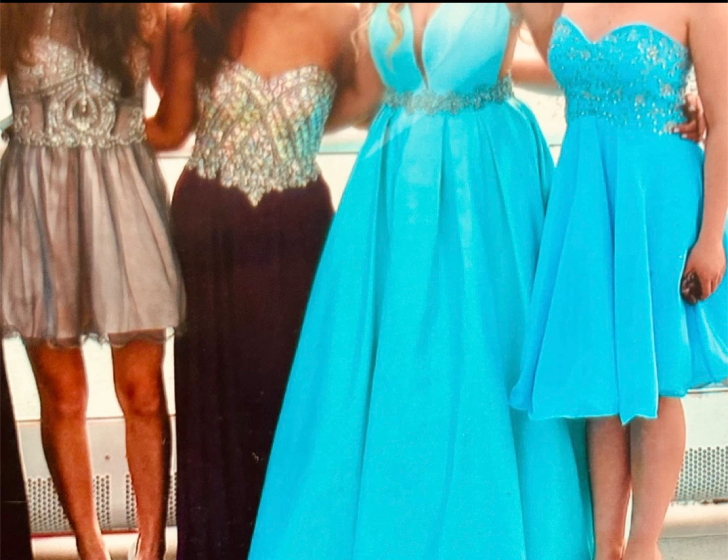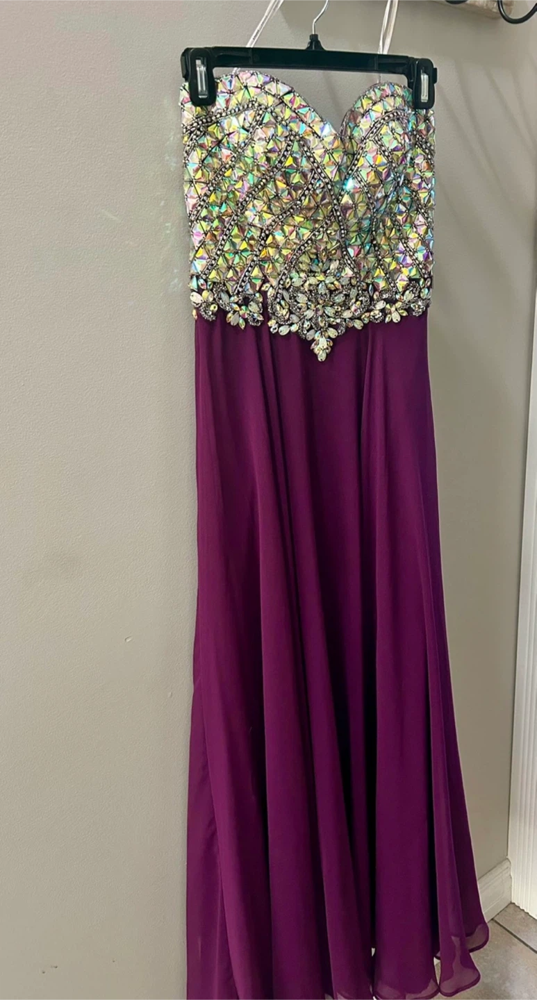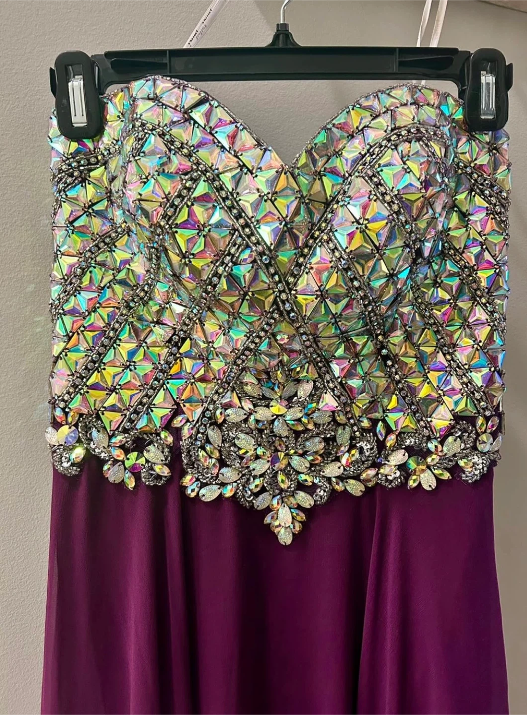 Selling a gorgeous purple prom dress with iridescent beading on the bodice. It has a corset back. In great condition!