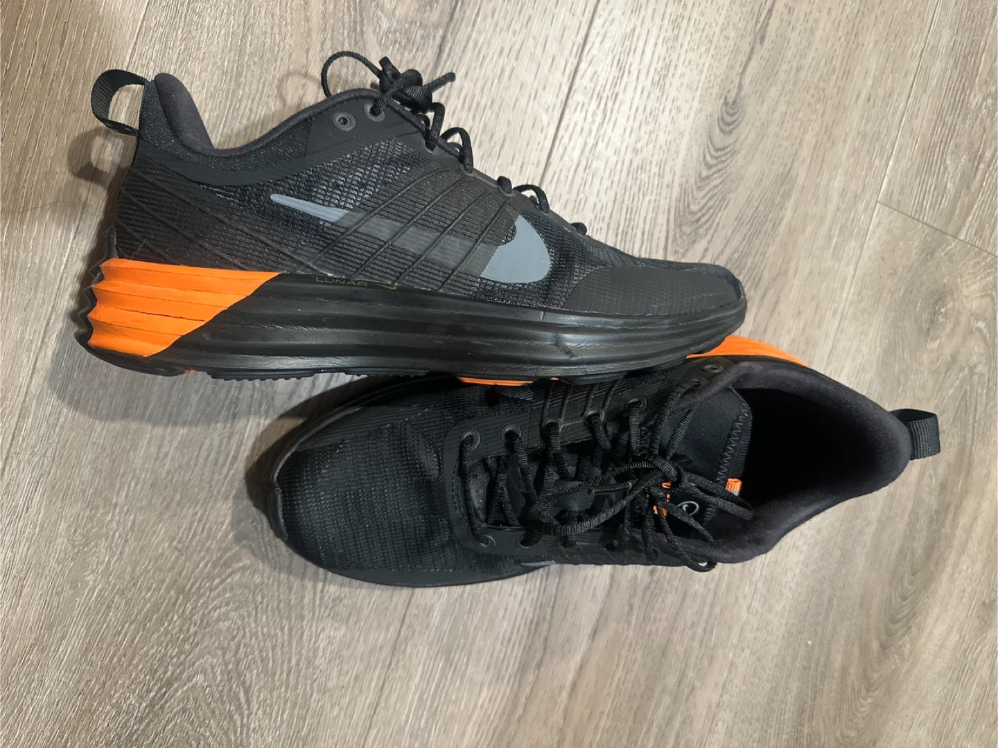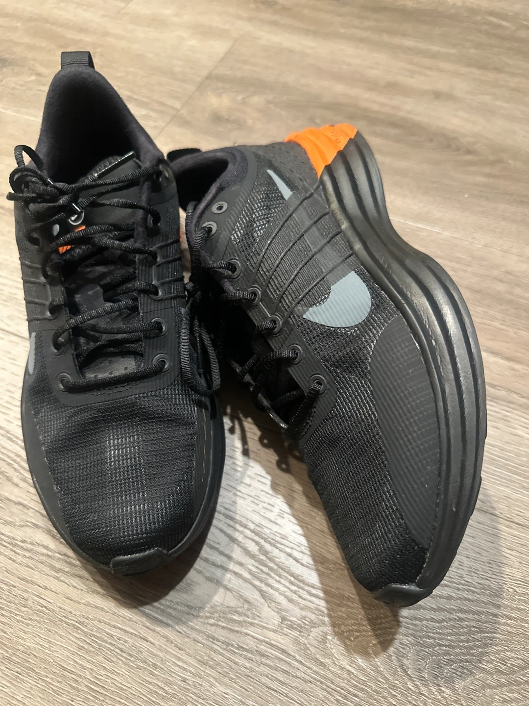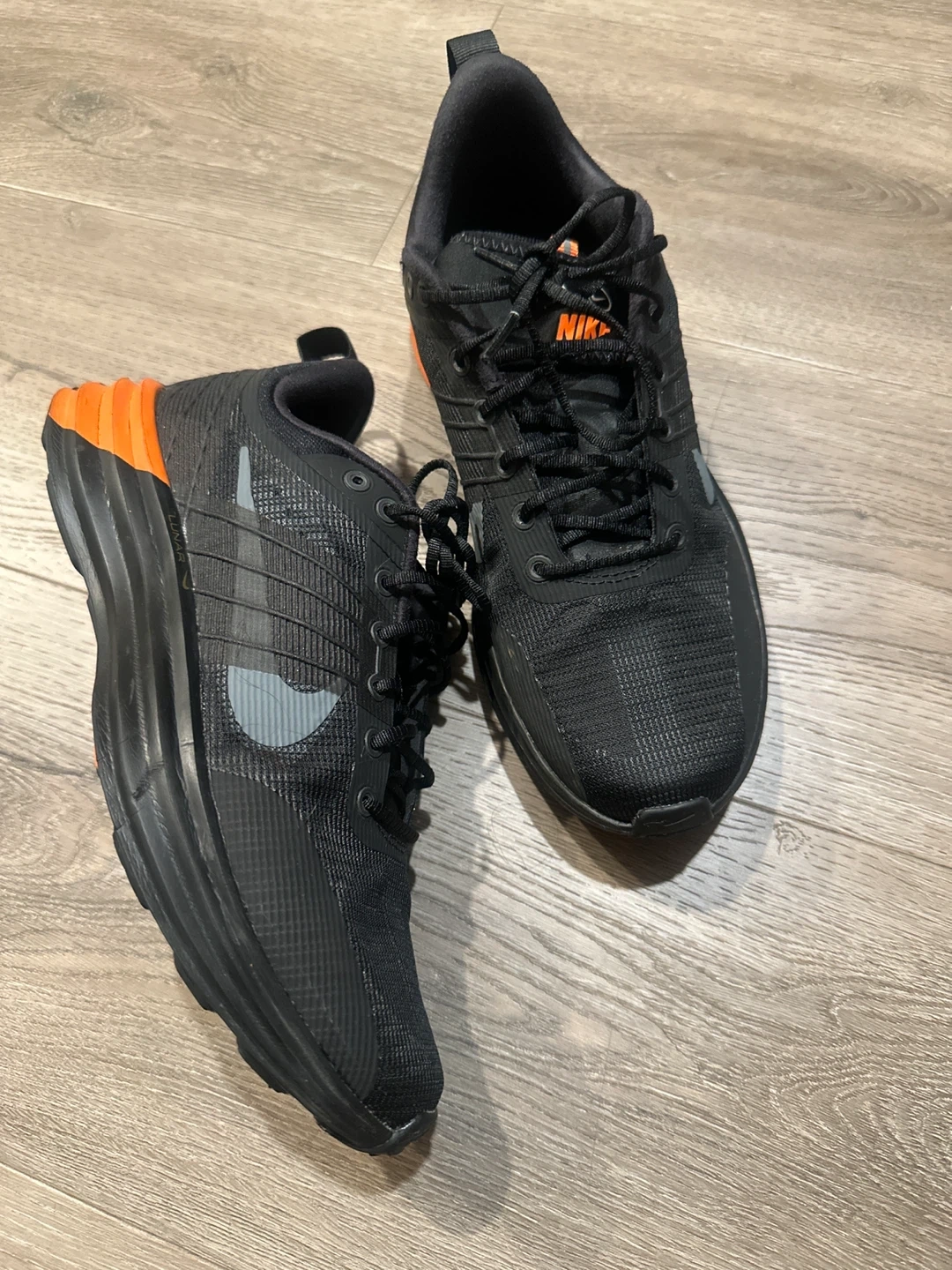 Selling a pair of Nike LunarGlide running shoes in black with orange accents.