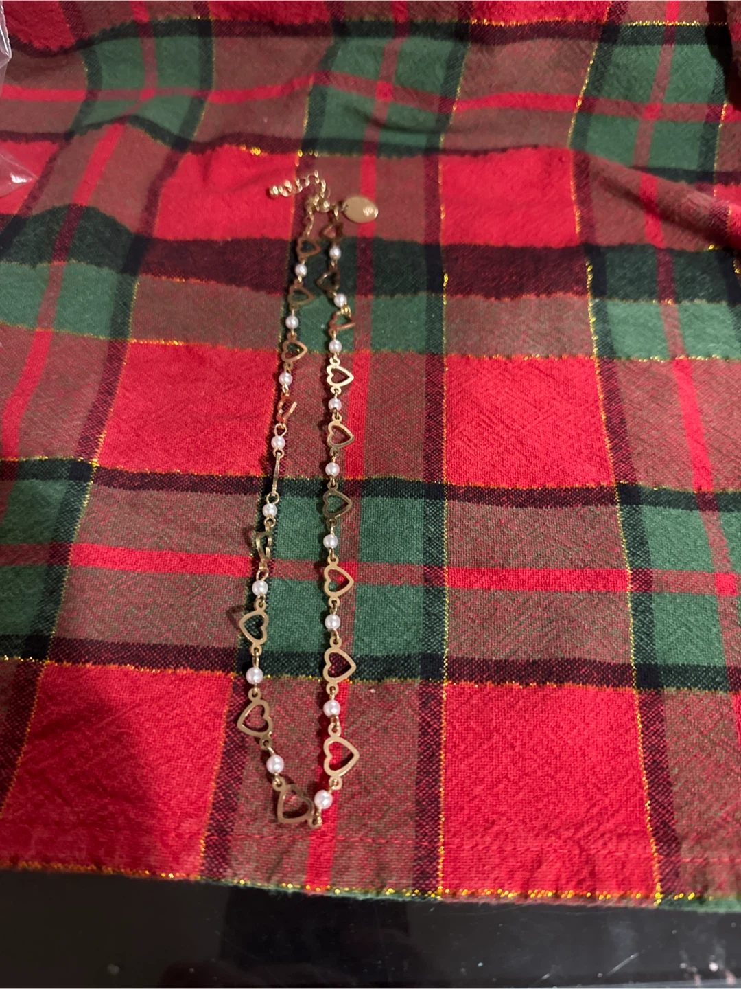 1 necklace with heart all over it