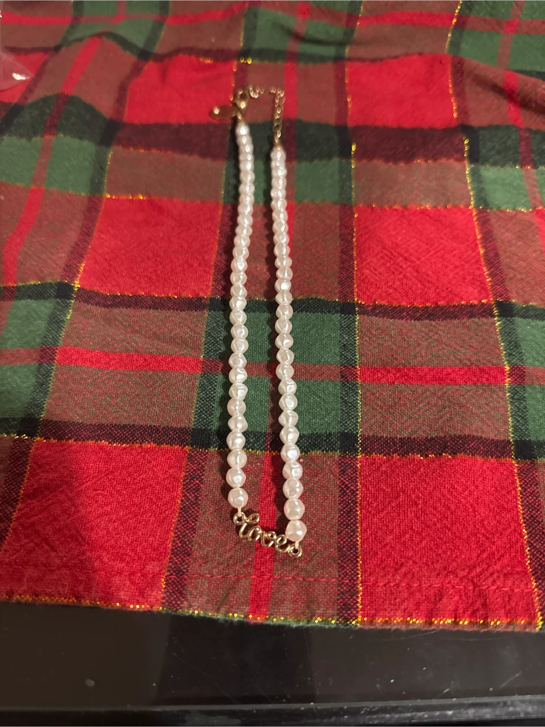 1 necklace that has love in cursive on it