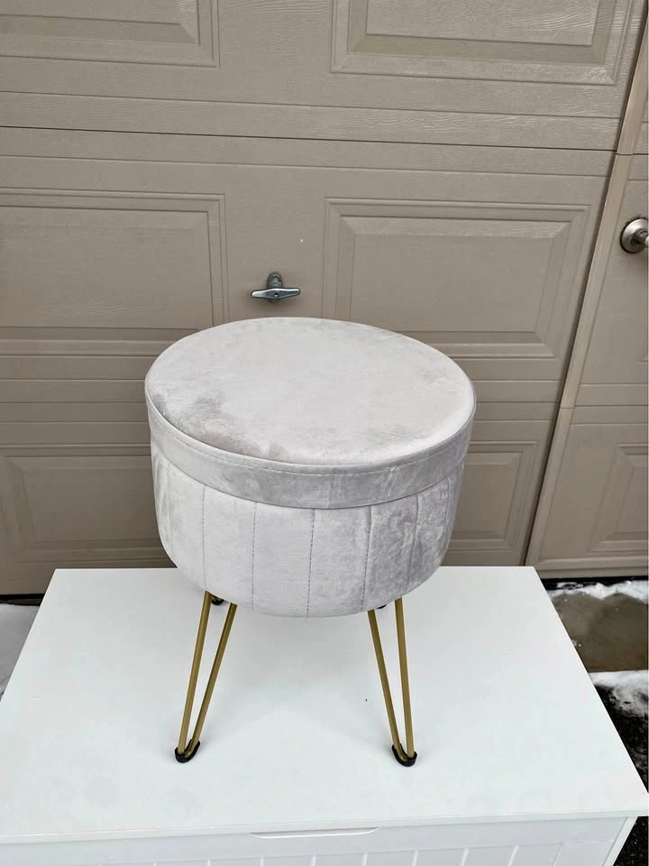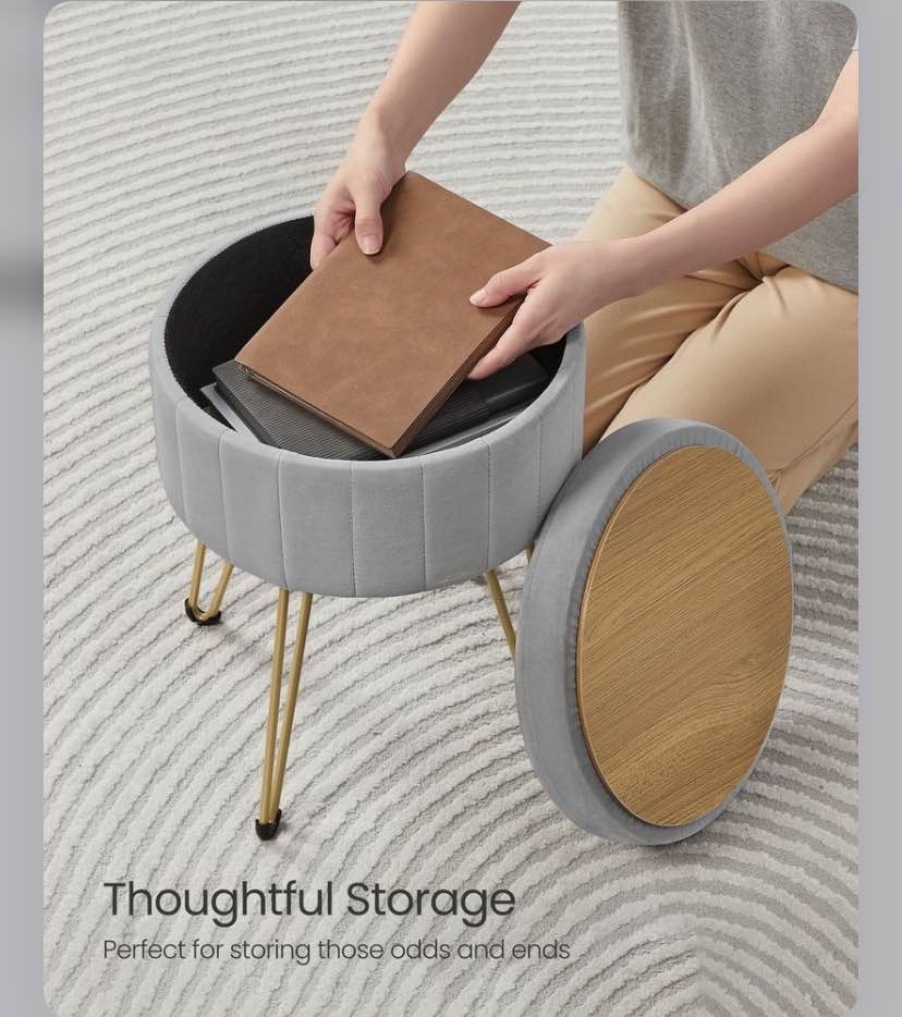 Stylish vanity stool with hidden storage! Perfect for bedrooms, dressing areas, or closets.