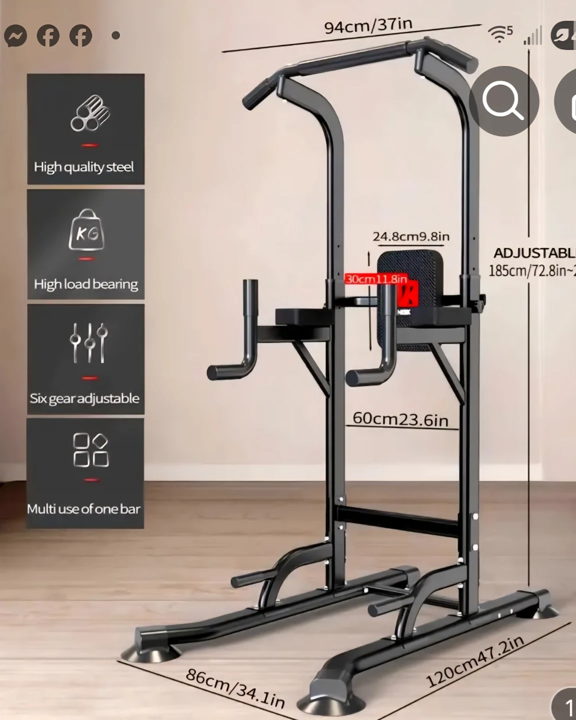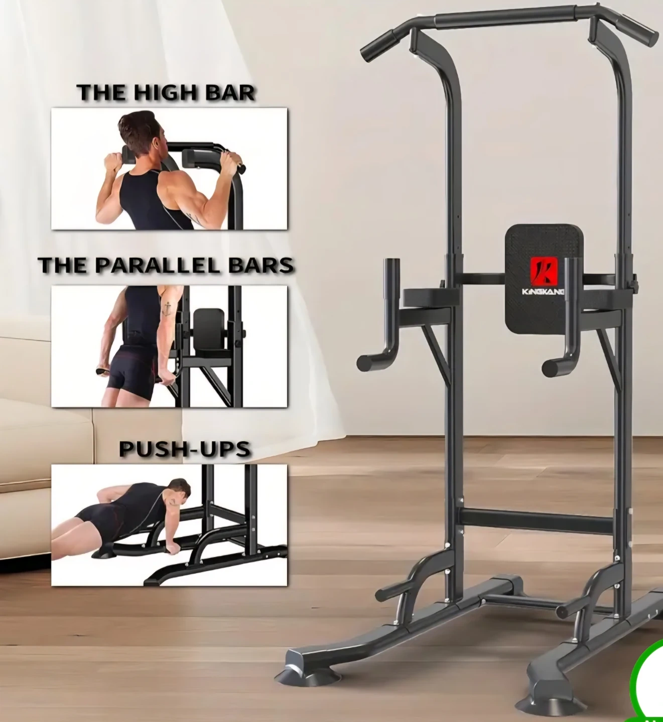 Get your workout on with this Kinskano Power Tower! It's perfect for pull-ups, dips, and push-ups. Made with high-quality steel and designed for high load bearing, this tower is built to last. It features six gear adjustable settings and a multi-use bar for versatile workouts. Dimensions include a 94cm/37in high bar, 60cm/23.6in parallel bars, and an adjustable height of 185cm/72.8in.