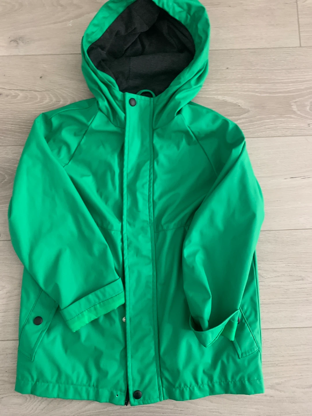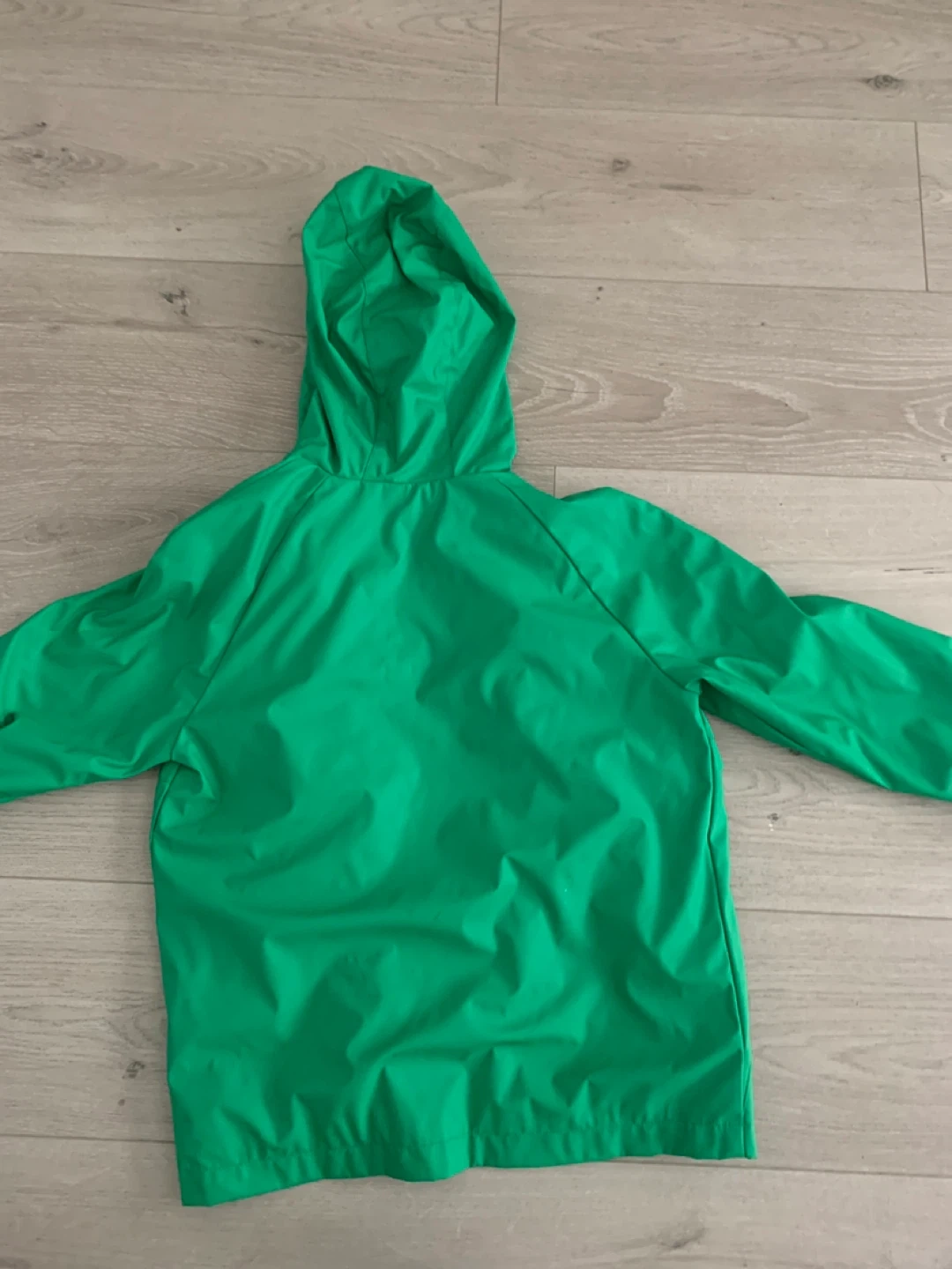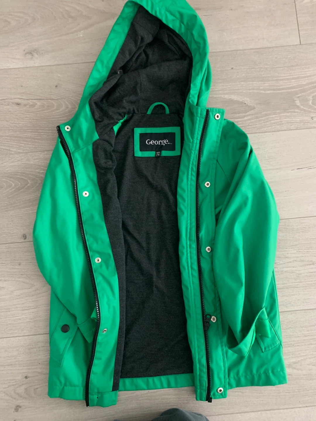 Selling a bright green rain jacket from George! It's a size M/M (7-8) and perfect for keeping your little one dry on rainy days.