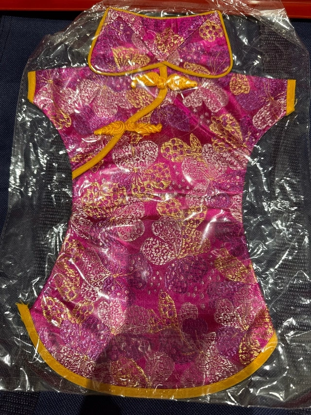 Brand new, exquisite Chinese-style Cheongsam dress for doll, featuring a beautiful pink and gold floral pattern, perfect for cultural celebrations or special occasions. The dress is still sealed in its original packaging, ensuring it remains in pristine condition until it's ready to be worn, or decor your wine bottles. * Classic mandarin collar * Intricate floral brocade * Traditional knot Isn't it just the cutest little thing? If the ad is up, it's available. Grab it before it’s gone!