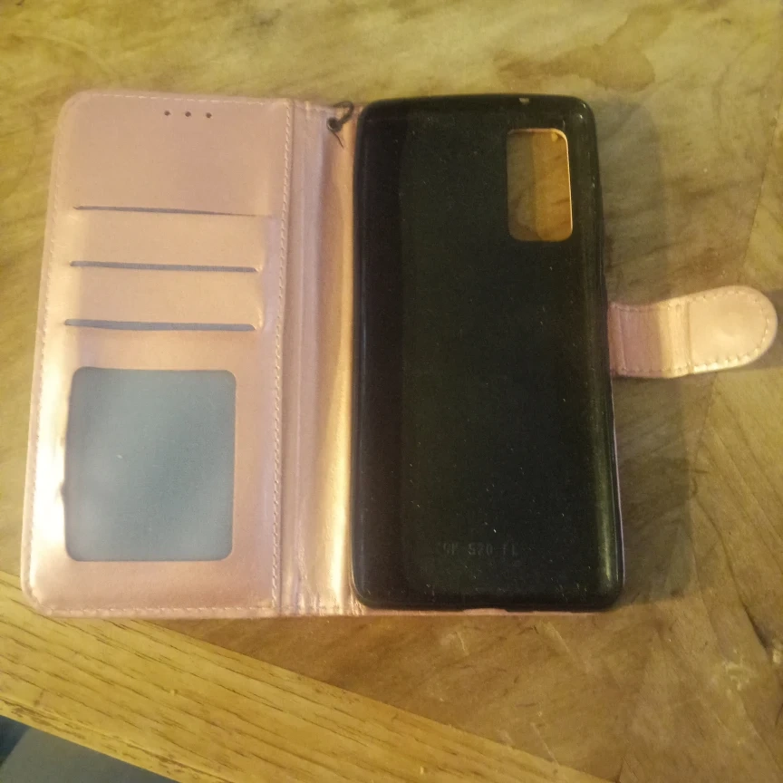 Selling a pink wallet case for a phone. It has slots for cards and a space for a photo. Great for keeping everything together! Serious buyers please don't deliver pick up only.