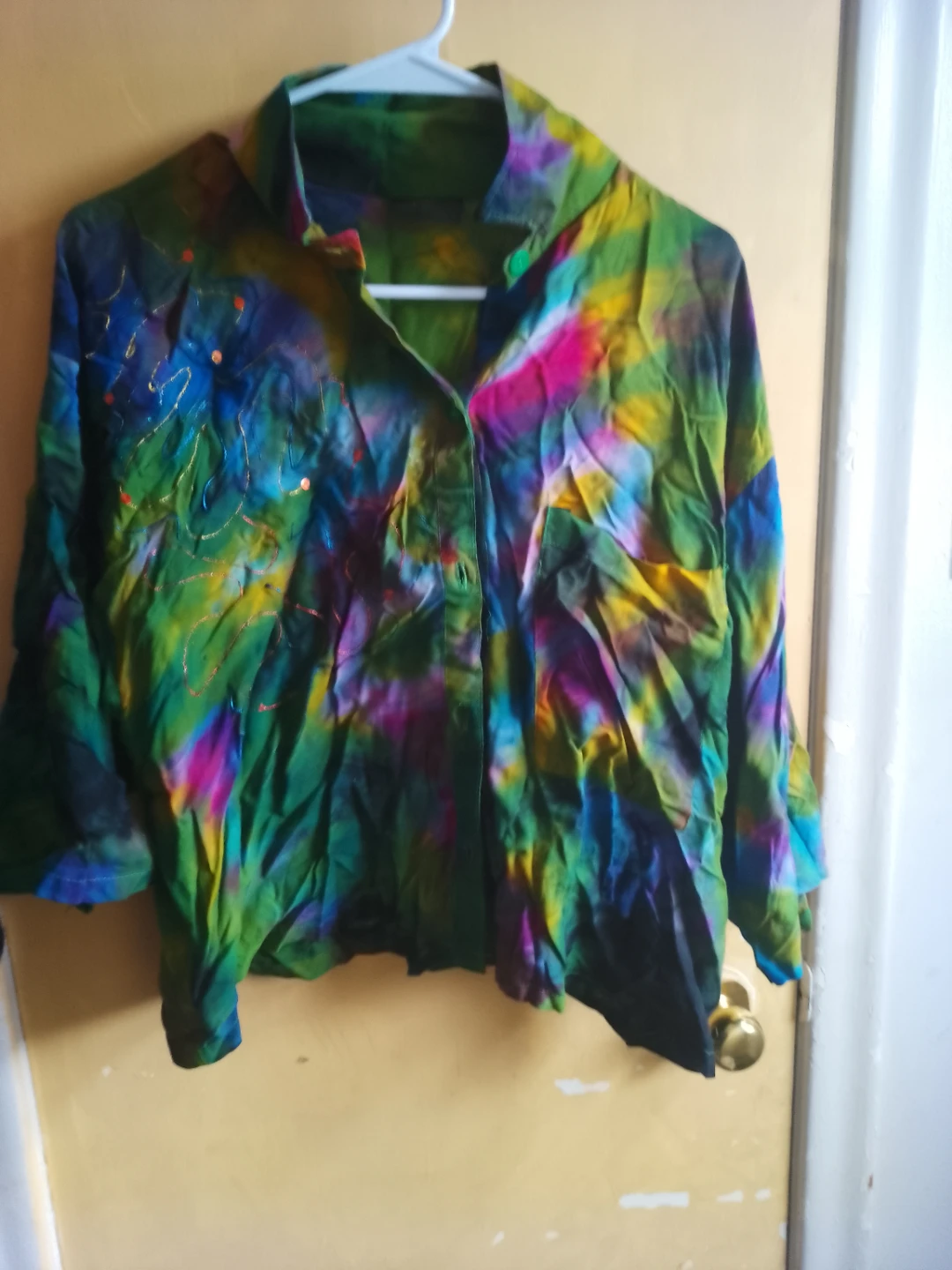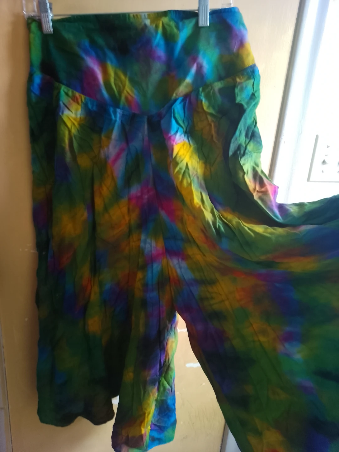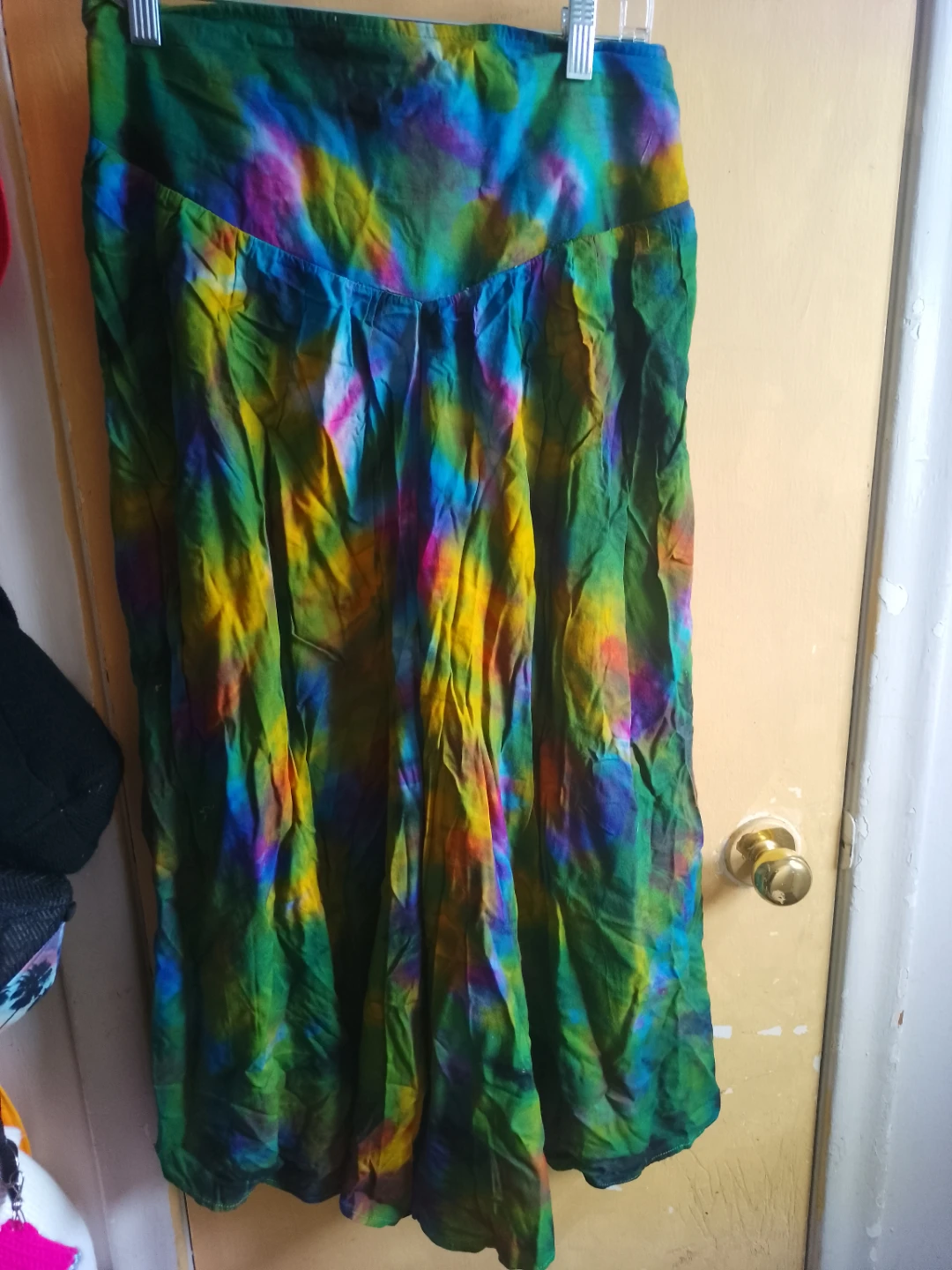 Selling a vibrant tie dye skirt and matching shirt set! The colours are really eye-catching with a mix of greens, yellows, blues and pinks. It's in great condition and ready for a new owner