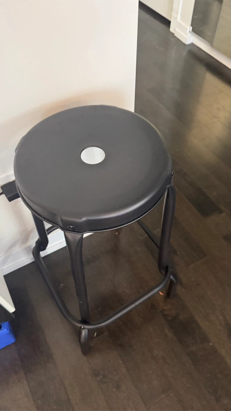 Selling a black metal bar stool. It's in great condition and would look great in any kitchen or bar area! The stool is sturdy and comfortable, perfect for everyday use. We got it from Ikea and it’s fully assembled for you!