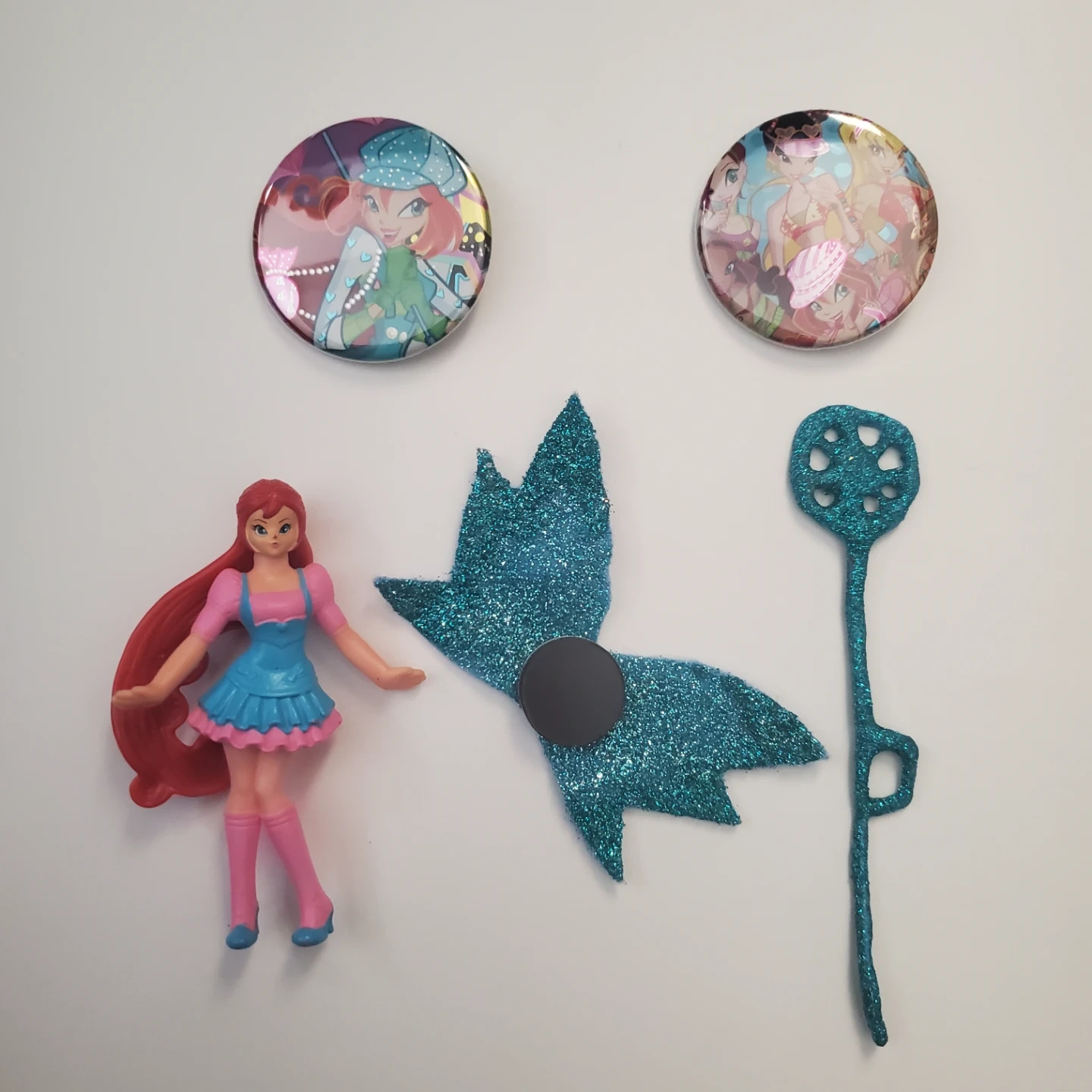 As a bonus, you get 2 custom Winx Club Pins, a mcdonalds bloom figure and 2 Winx Club trading cards from my extras.