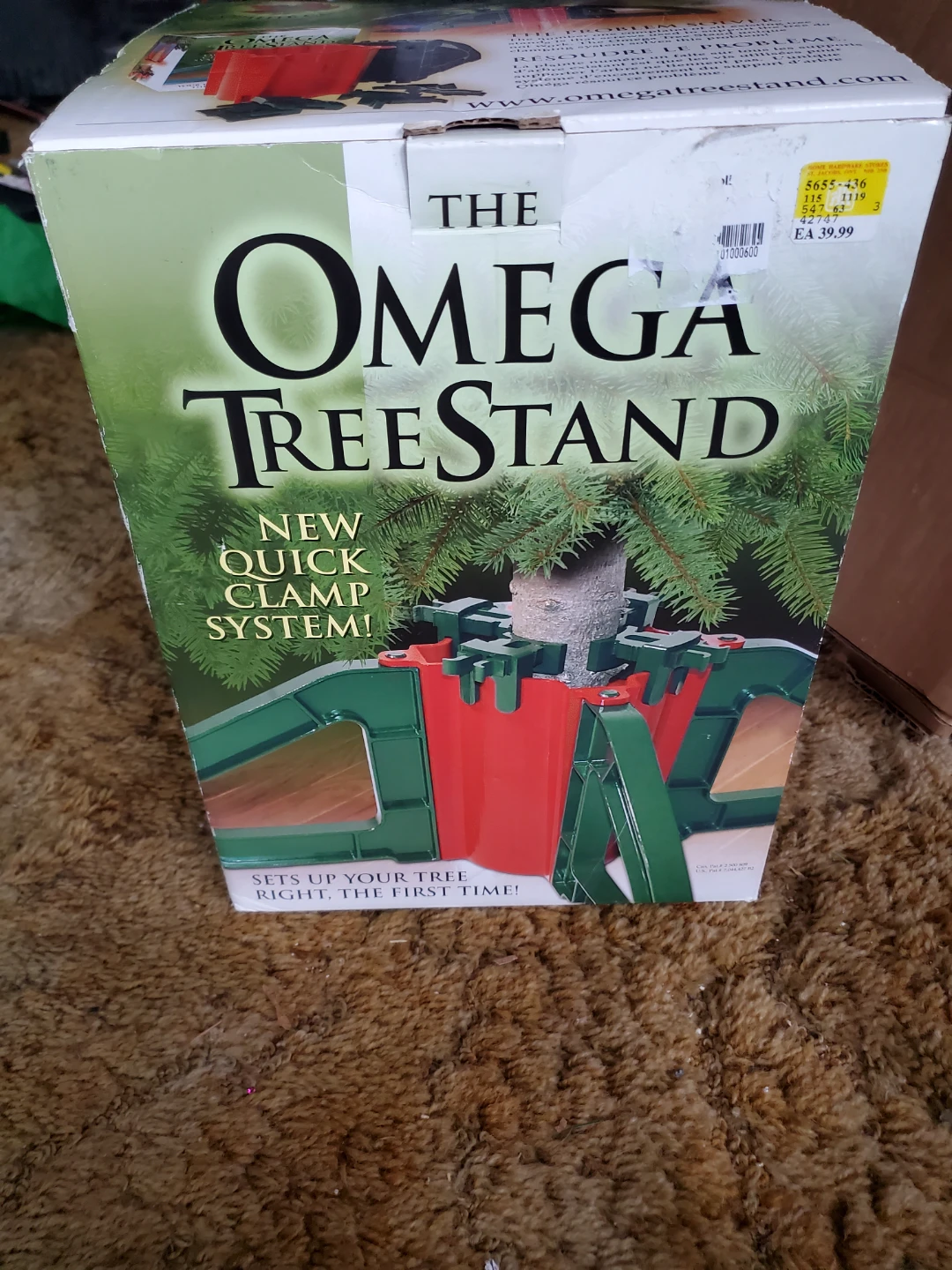 Selling an Omega Tree Stand with a quick clamp system! It sets up your tree right the first time. The box is included. Originally, it retailed for $39.99. Its in great condition. Meant for a real tree. Northend St. Catharines. Smoke free home. 10$