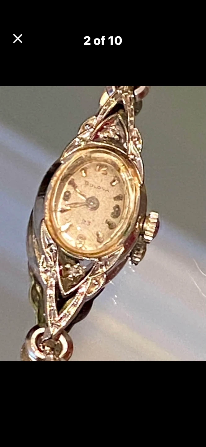 Selling a vintage Estate Bulova ladies watch. It's a beautiful piece with a unique design. Perfect for collectors or anyone who appreciates vintage timepieces! 10-k gold with diamonds.π