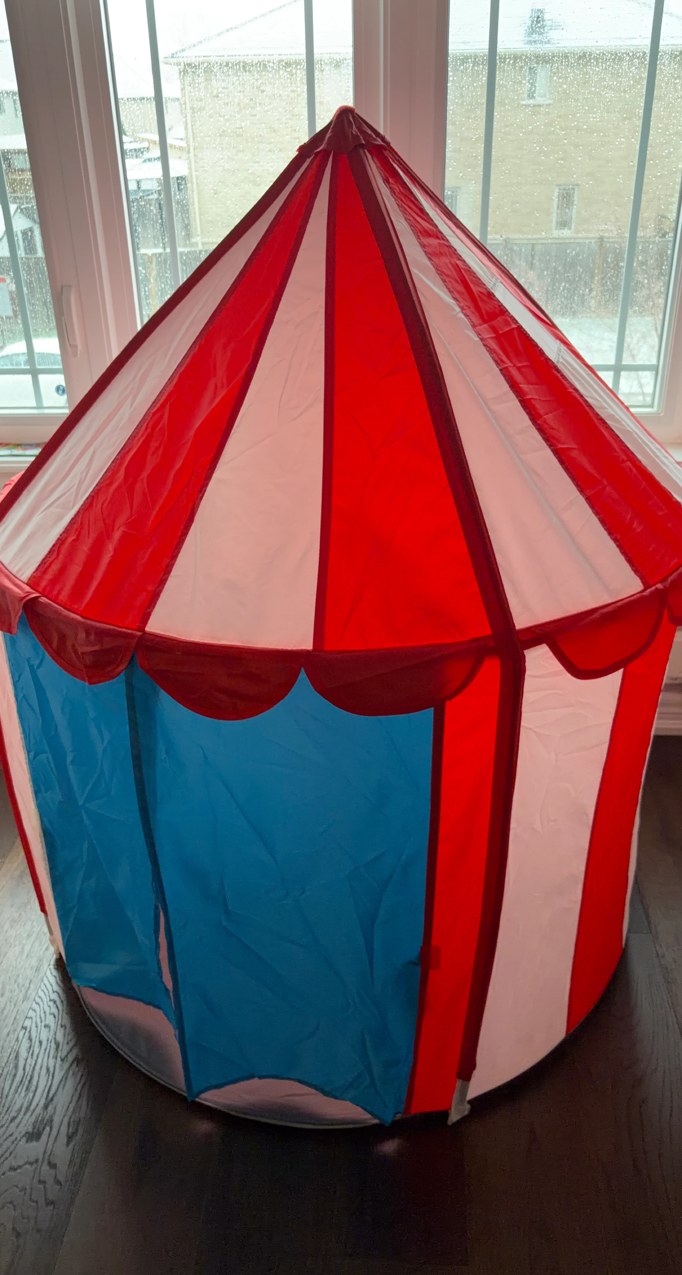 This cute circus tent is perfect for kids to play in! It's in great condition and ready for a new home. It's a fun way to encourage imaginative play
