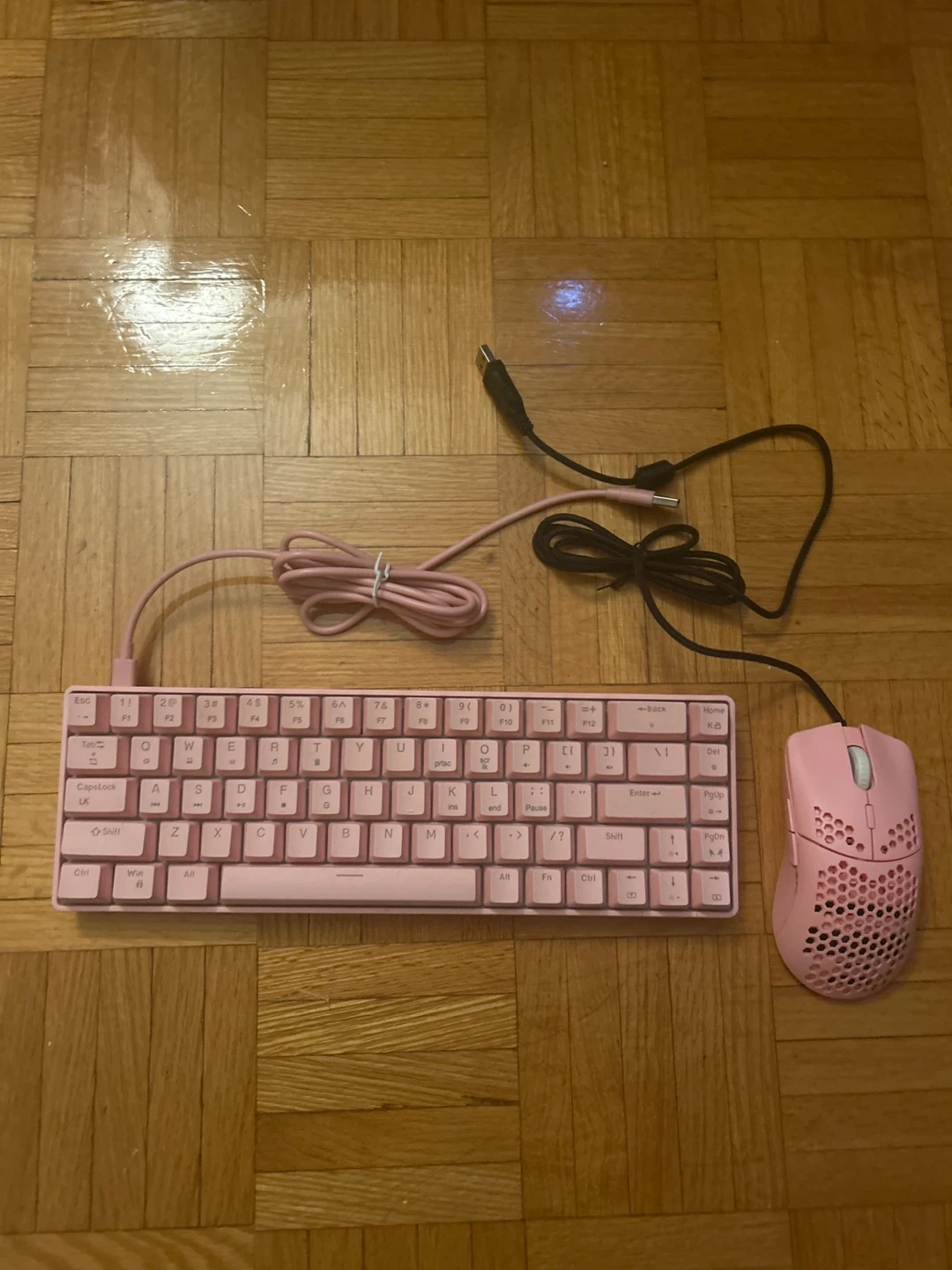 Selling a cute pink mechanical keyboard and mouse set! Both are in great condition and come with their respective cables. Perfect for a gamer or anyone who loves pink!