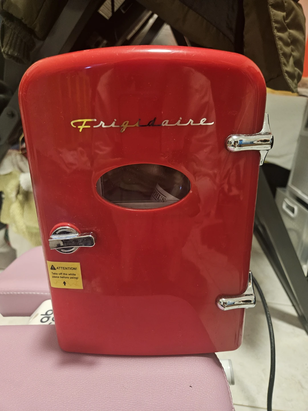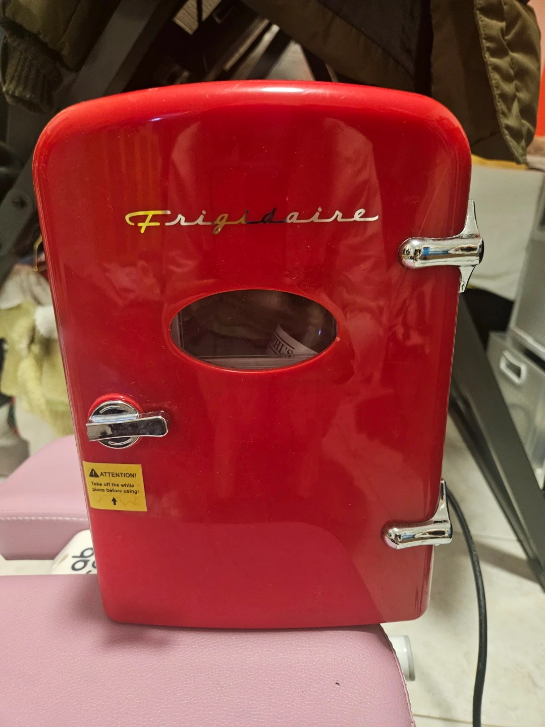 Selling a cute Frigidaire retro mini fridge! It's red and perfect for keeping drinks or snacks cool in your room or office. Lightweight and portable, making it easy to move around