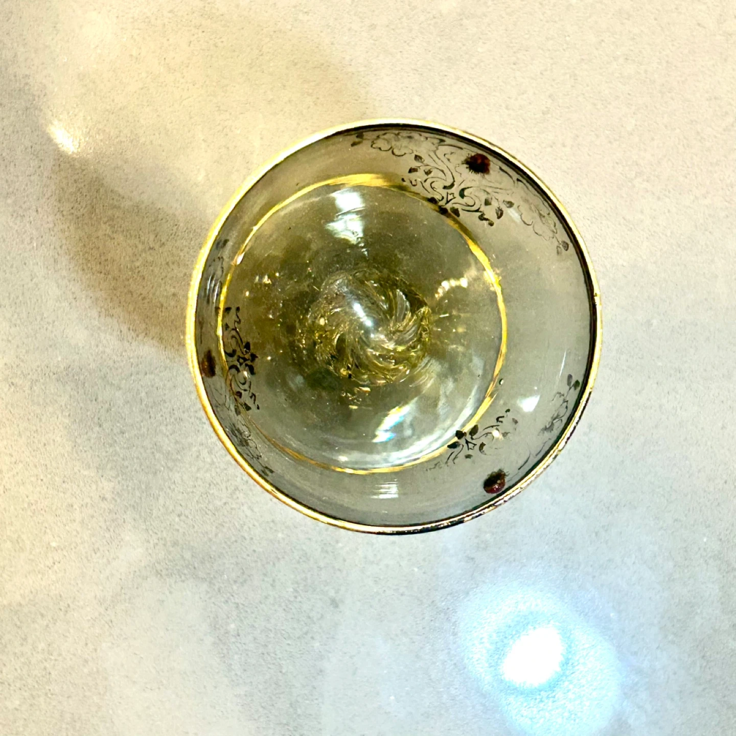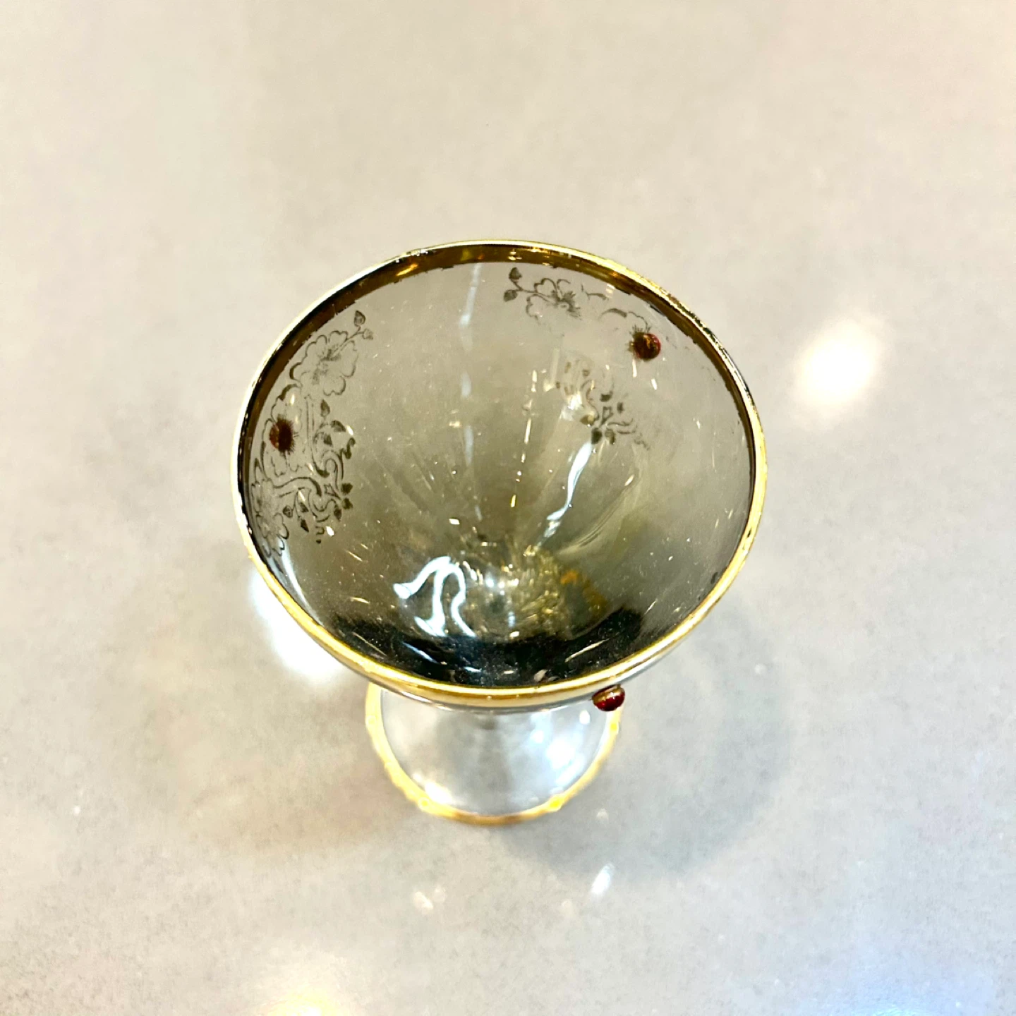 Good vintage condition. Light wear to gold trim and minor surface marks consistent with age and hand-made glass. No cracks, chips, or repairs. Please review all photos, including close-ups, as they are part of the description.