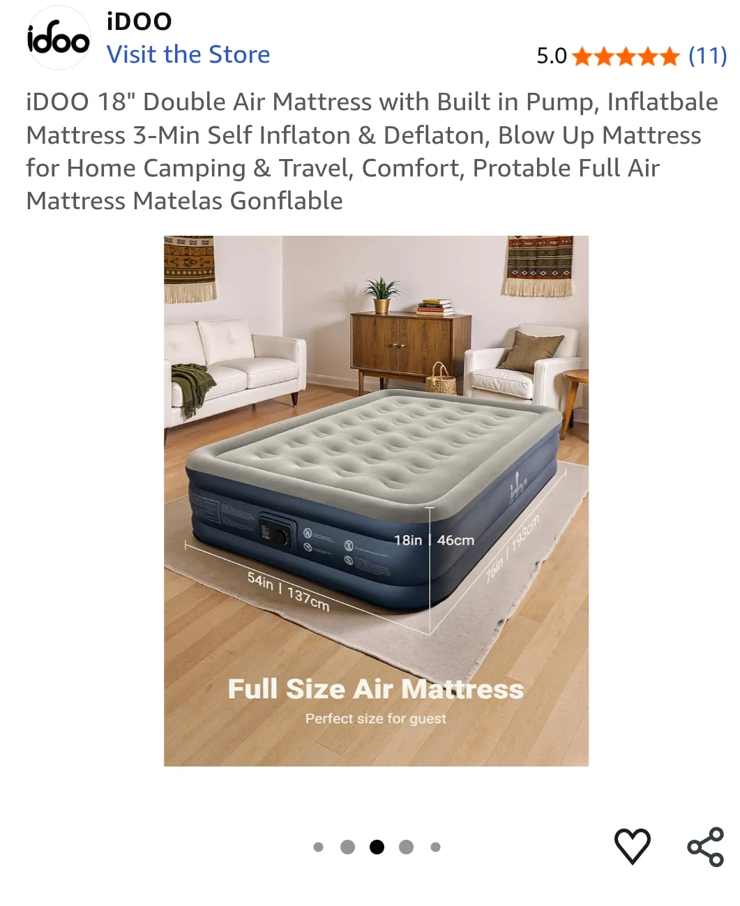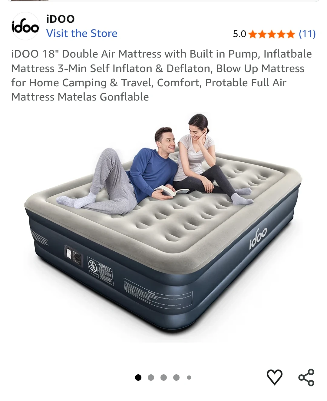 Selling a brand new iDOO double air mattress! It comes with a built-in pump for easy inflation and deflation. Perfect for home, camping, or travel. It's a full-size air mattress, so it's perfect for guests!