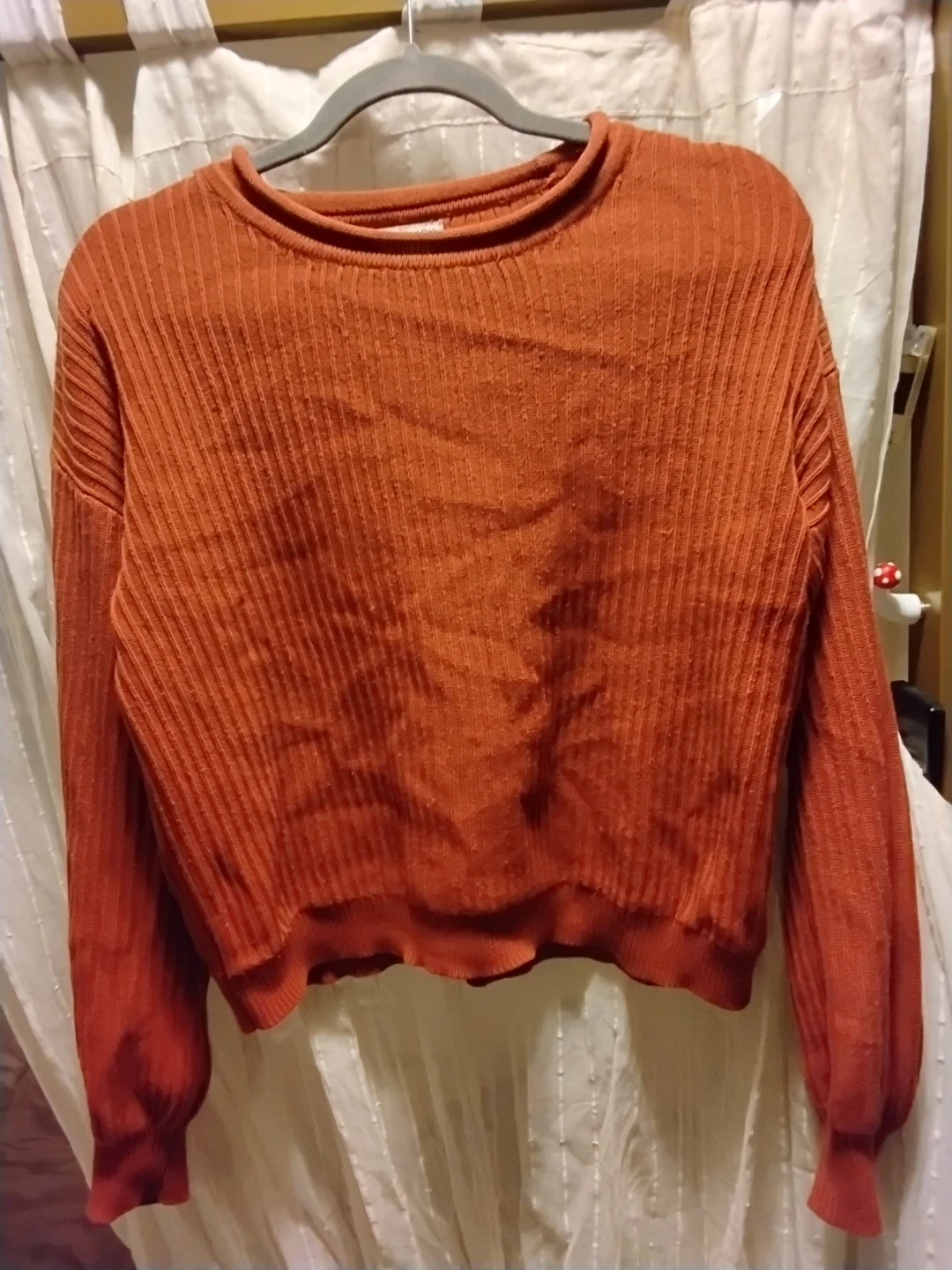 Selling a Frank and Oak sweater in size small! Can fit a small-med. It's a lovely ribbed knit in a warm, earthy colour. Perfect for layering or wearing on its own for a cozy vibe