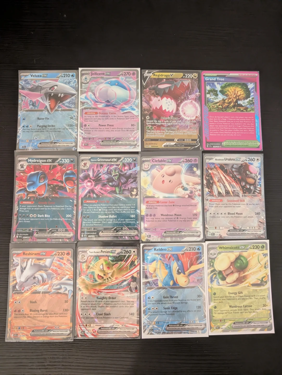Selling a collection of Pokemon EX and V cards! Includes Veluza ex, Jellicent ex, Regidrago V, Hydreigon ex, and more. Great for collectors or players looking to expand their collection