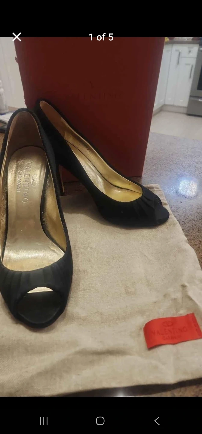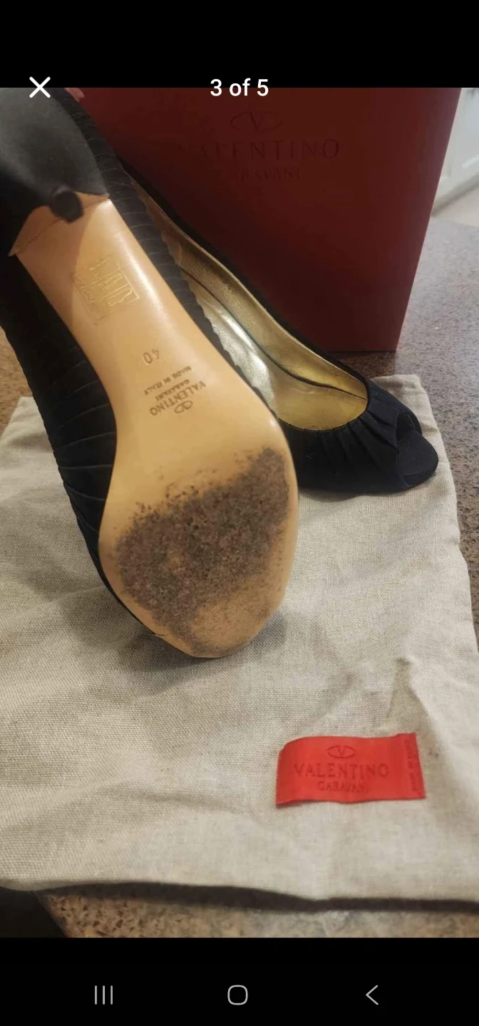 Selling a pair of Valentino Garavani black heels in size 40. They show some signs of wear on the soles, but the uppers are in good condition. The shoes were worn once for few hours.The original box is included!