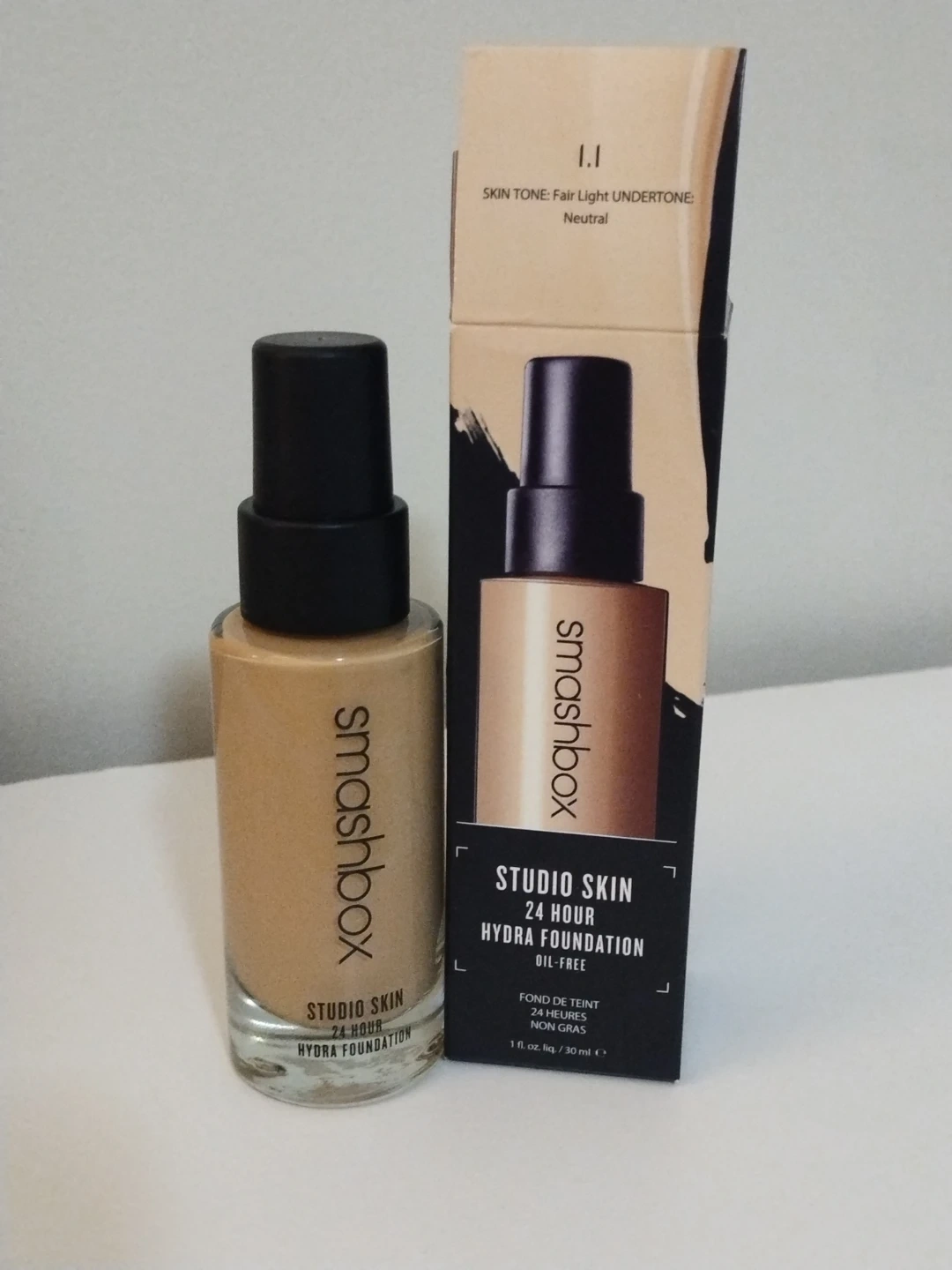 Selling a Smashbox Studio Skin 24 Hour Hydra Foundation in shade 1.1. It's oil-free and provides medium-to-full buildable coverage. It won't settle into lines and pores, and it's transfer-proof. The formula controls shine and won't cause breakouts, leaving a comfortable, natural matte finish.