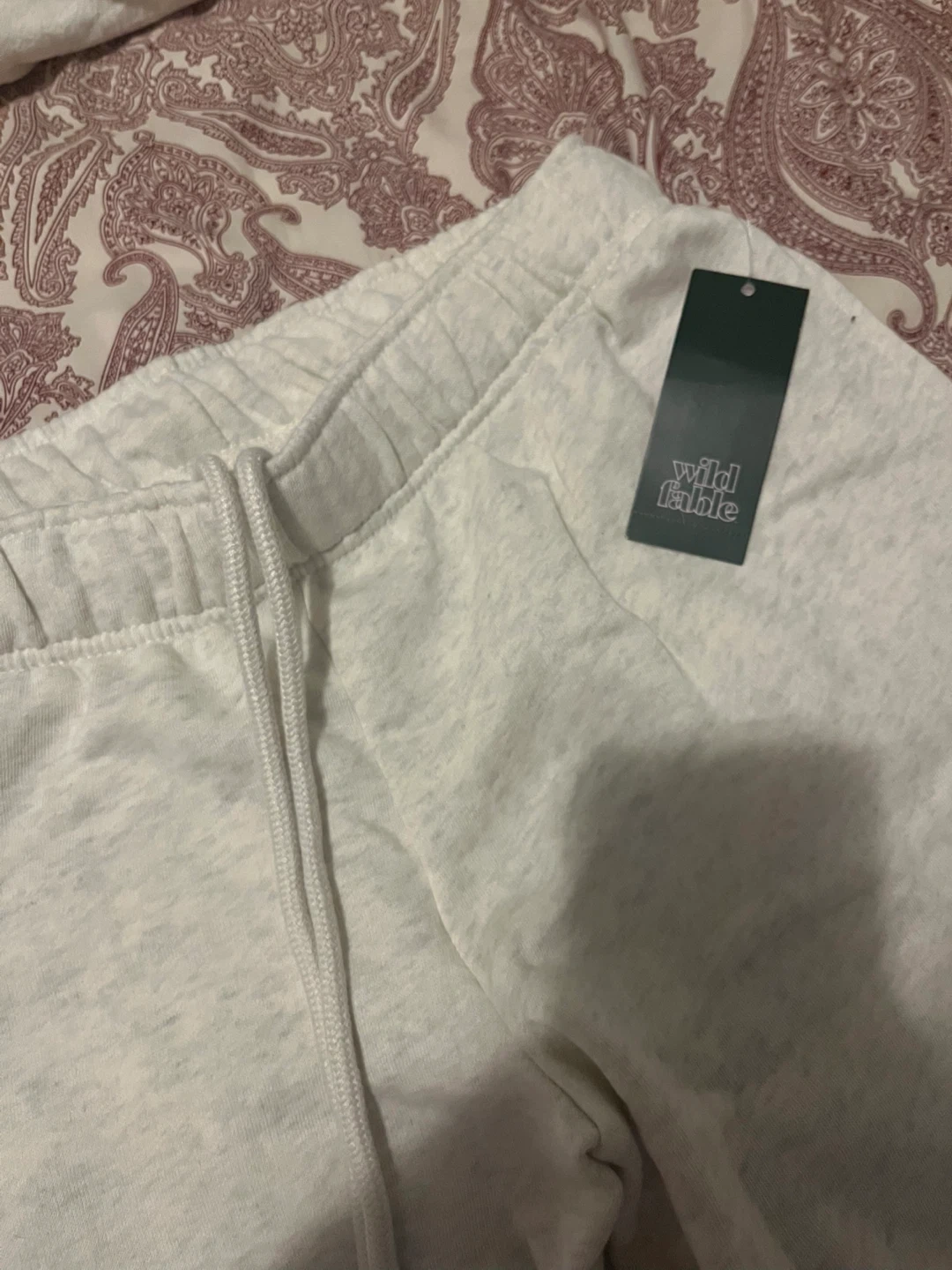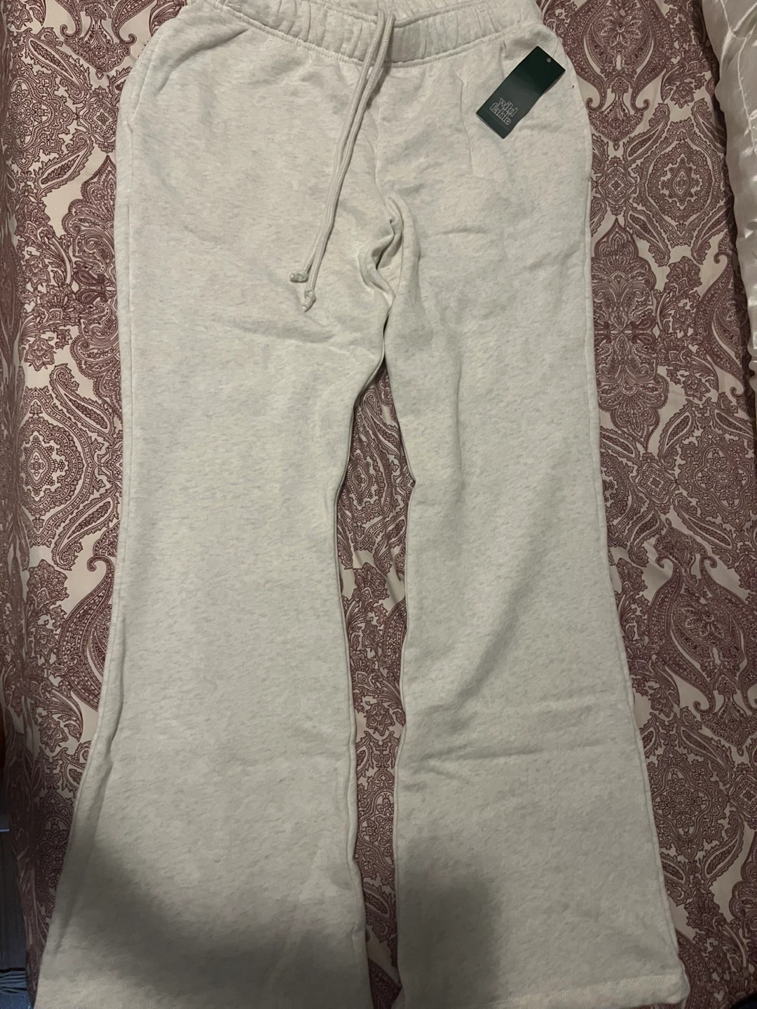 Selling a pair of Wild Fable women's flare sweatpants. These are a size medium and in excellent condition. They're a light heather gray color and feature a comfortable drawstring waist. Perfect for lounging or casual wear!