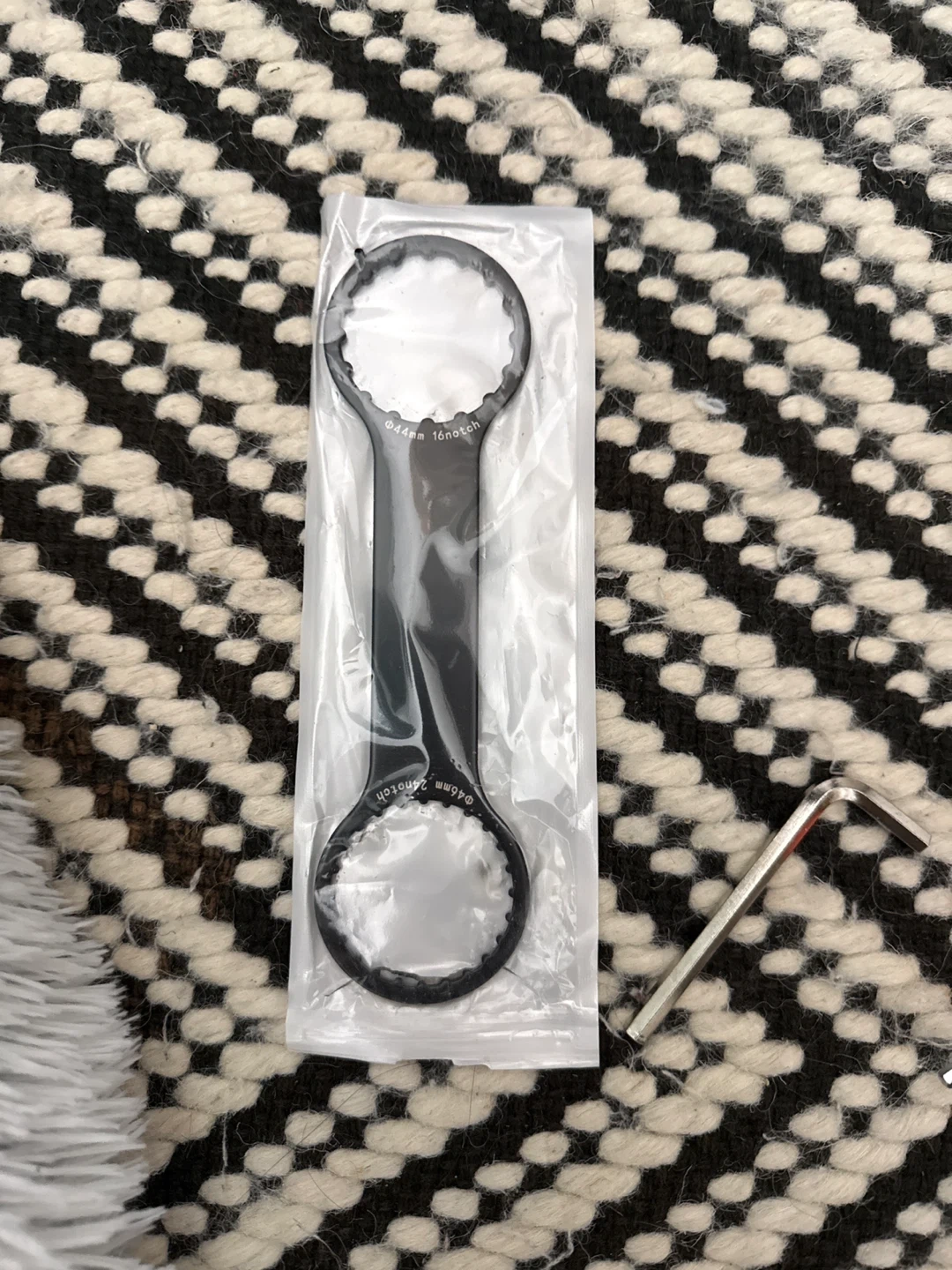 I'm selling a brand new bottom bracket wrench tool! It's 44mm on one end and 46mm on the other. It also comes with an Allen wrench.