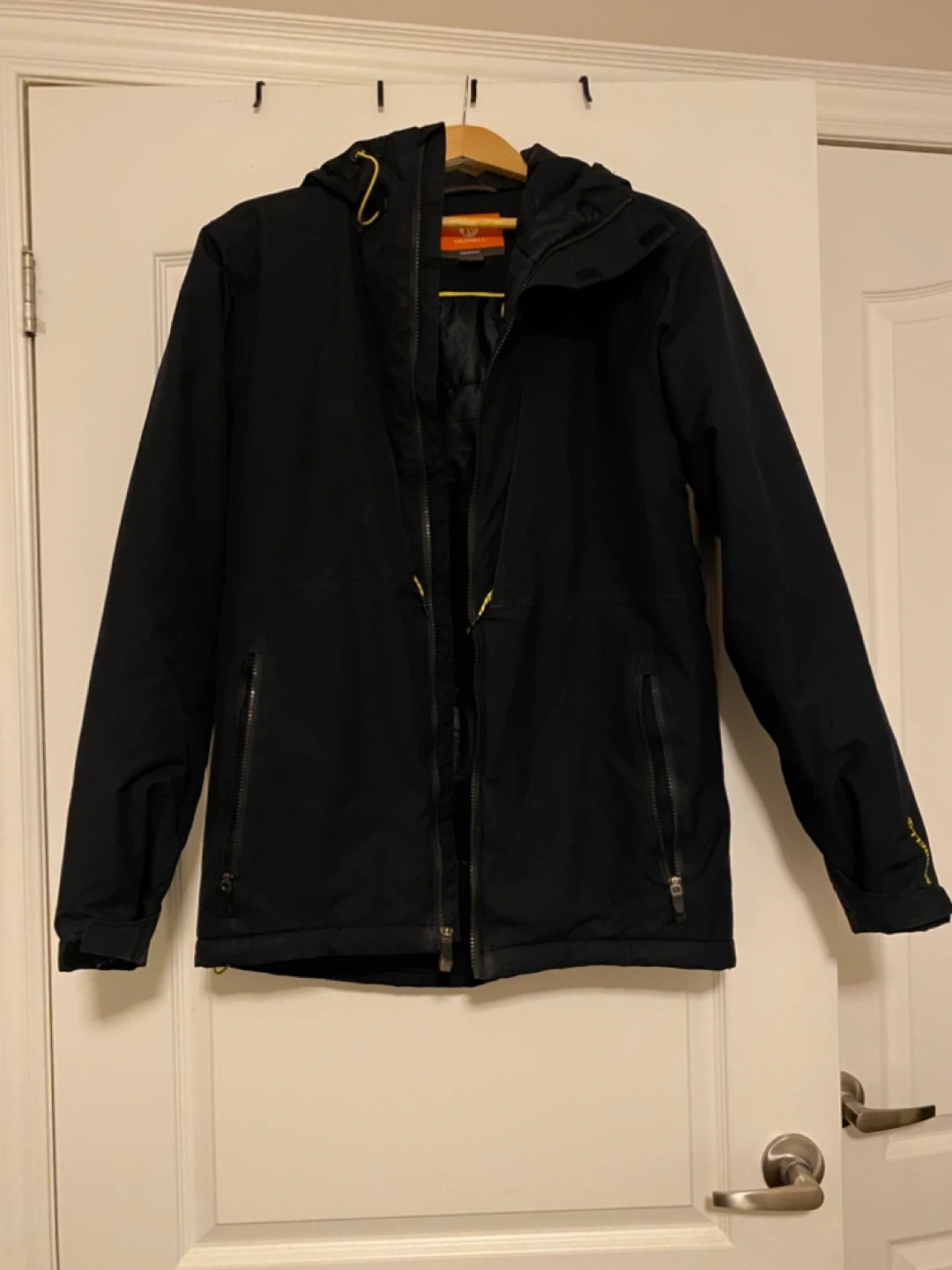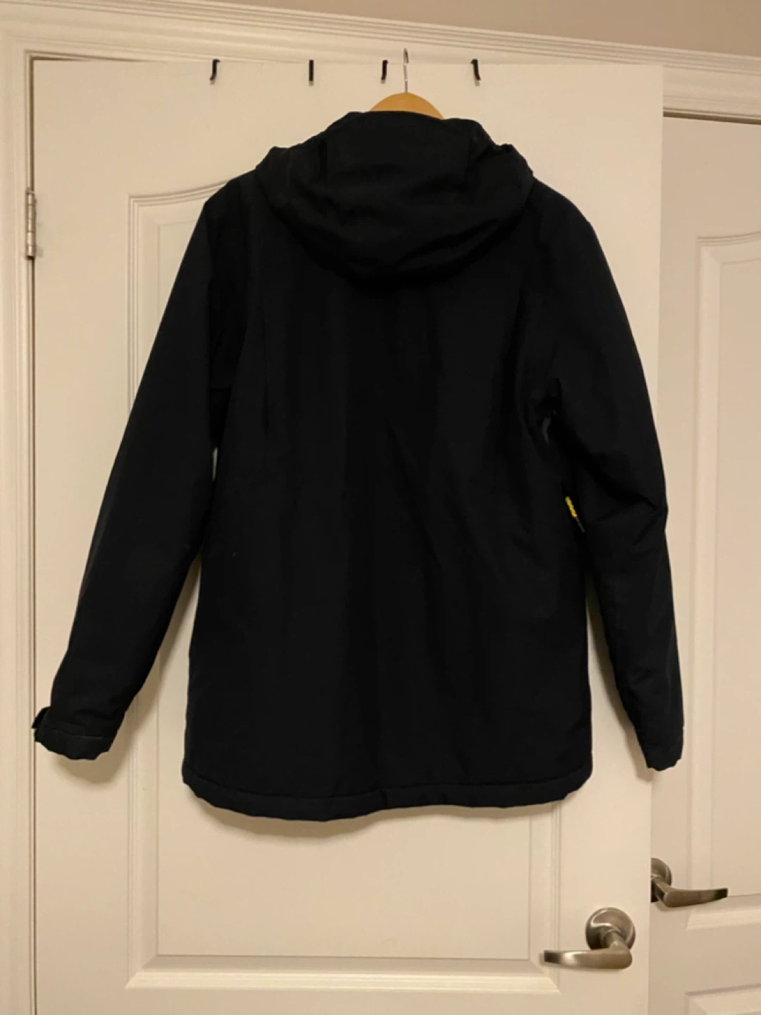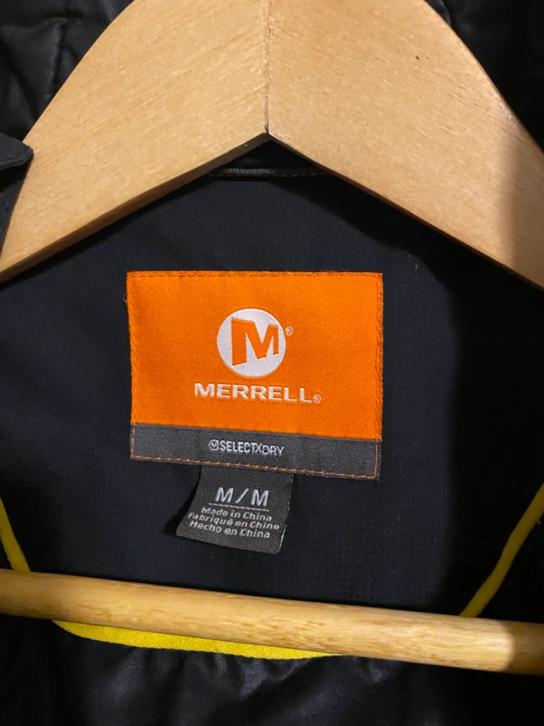 Selling a Merrell black jacket in size medium. It's in excellent new condition. The jacket features a hood and is perfect for everyday wear.