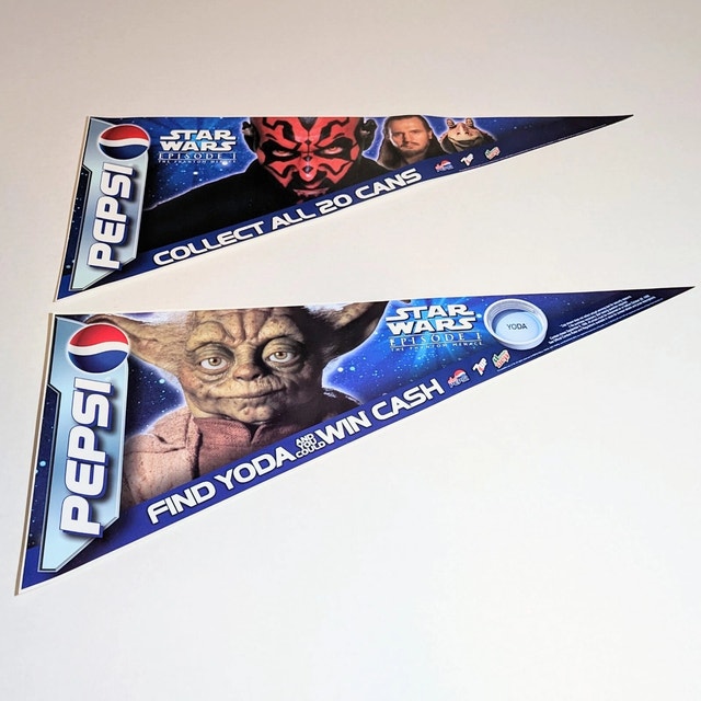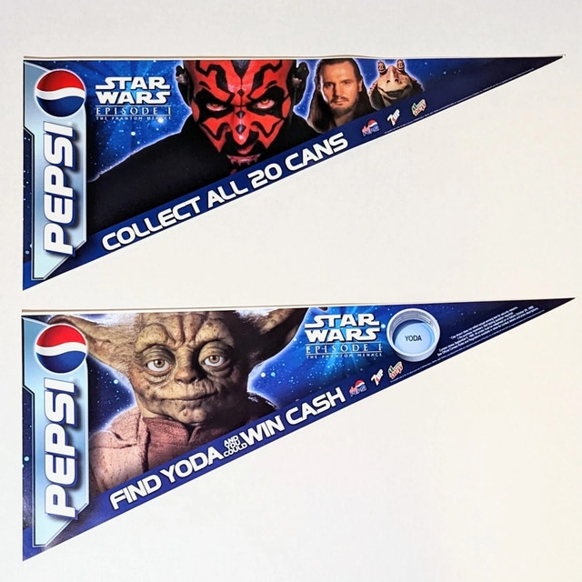 --> Pepsi Star Wars Cooler Fridge Pennant Banner Sticker with Yoda Character "Find Yoda And You Could Win Cash" Canadian Version