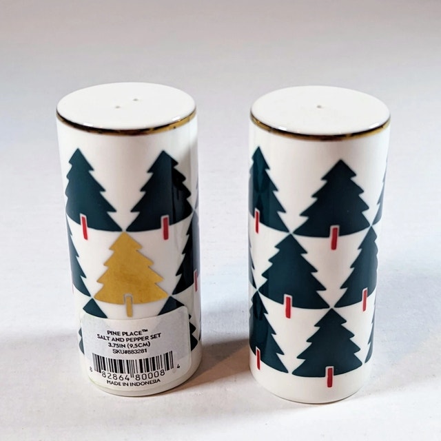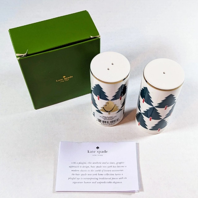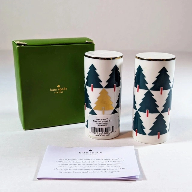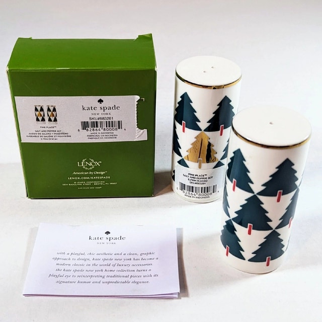 Details: Brand: Lenox Kate Spade ✨ Collection: Pine Place Item: Salt & Pepper Shakers (Set of 2) Pattern: Christmas Trees Great for holiday entertaining or as a gift A beautiful collectible set that blends timeless Lenox quality with Kate Spade’s modern, cheerful design.
