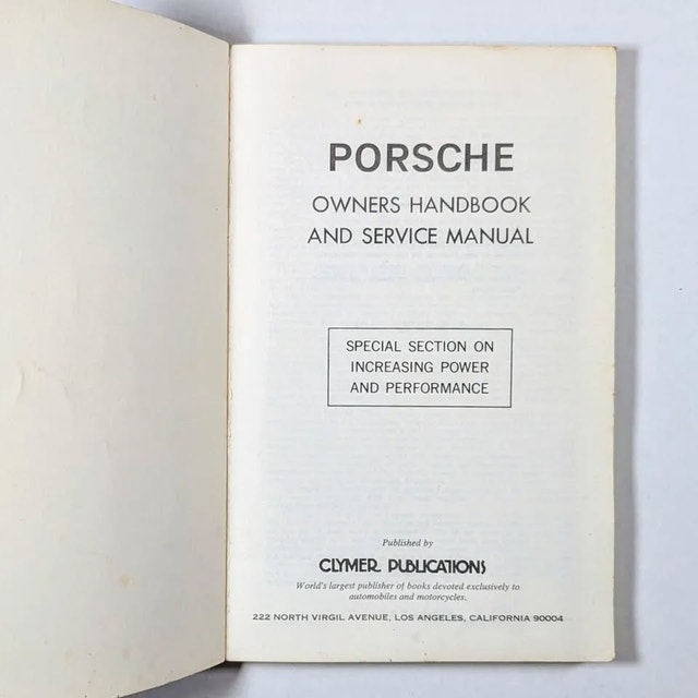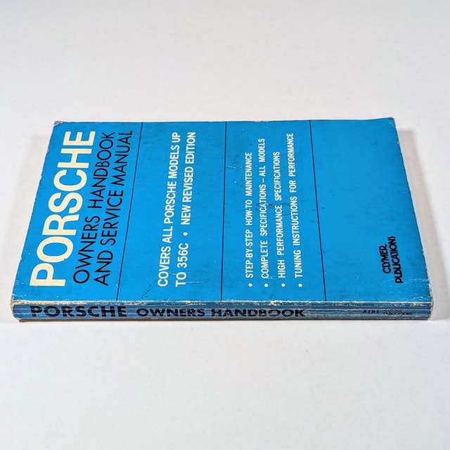 Clymer Publications. Los Angeles, 1967 revised edition, Softcover, 212 pages, 5.25" x 8.25". Covers all Porsche 356 models up to 356C series from 1948 through 1965.