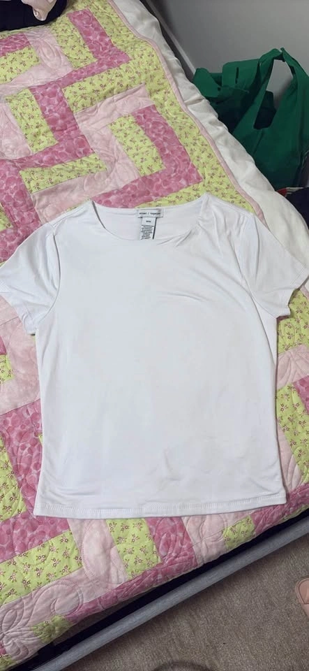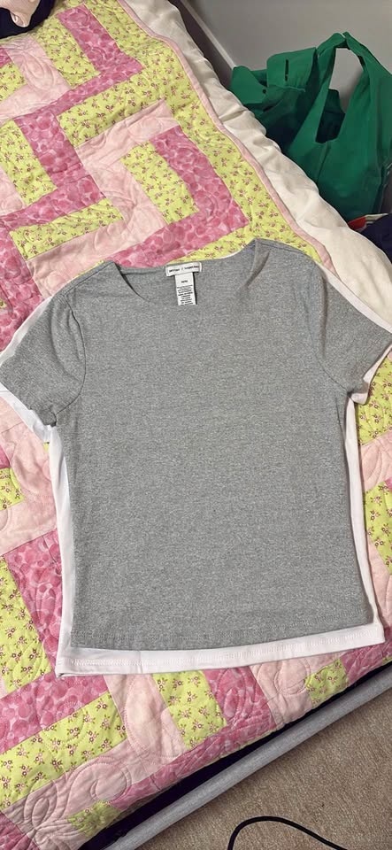 Grey and White Tees. Size Medium. Both pretty tight just in general. Grey tee is the only one I’ve worn before.