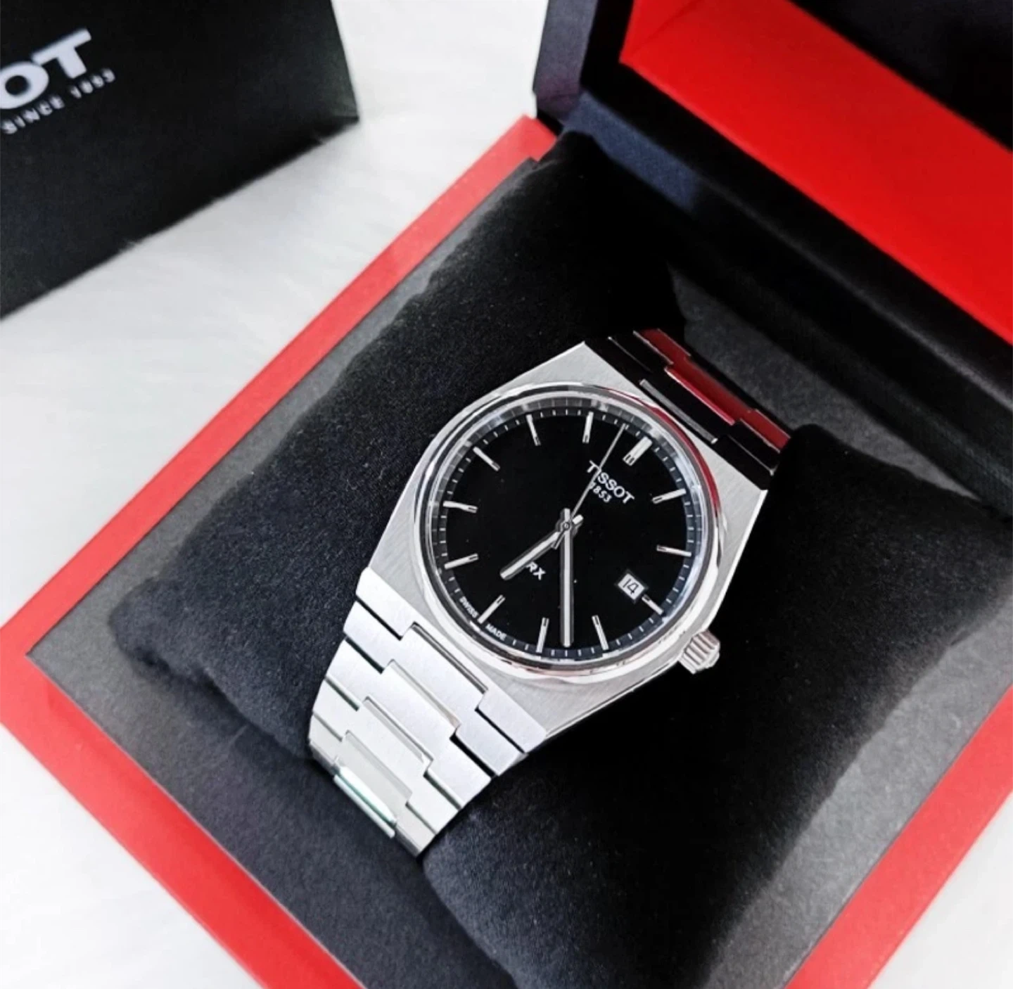 Selling my Tissot PRX Swiss-made wristwatch. Classic integrated bracelet design, sapphire crystal, reliable movement (automatic/quartz). Worn lightly, keeps excellent time. Comes with original box and paperwork.