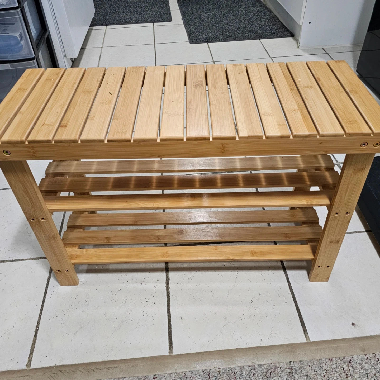 Selling a sturdy bamboo shoe rack bench! It's perfect for keeping your entryway organized and tidy. The natural bamboo finish adds a warm touch to any space. It's in great condition and ready to use.
