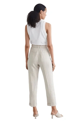 & Other stories belted high waist linen pants US 4 High waist trousers finished with press creases, fold-up cuffs and a tonal belt. Side pockets & back pockets. oatmeal color 100% linen Summer, vacation, clean girl, minimalist, minimal, quiet luxury, beachy, relaxed, classic, classy, neutral, trendy,