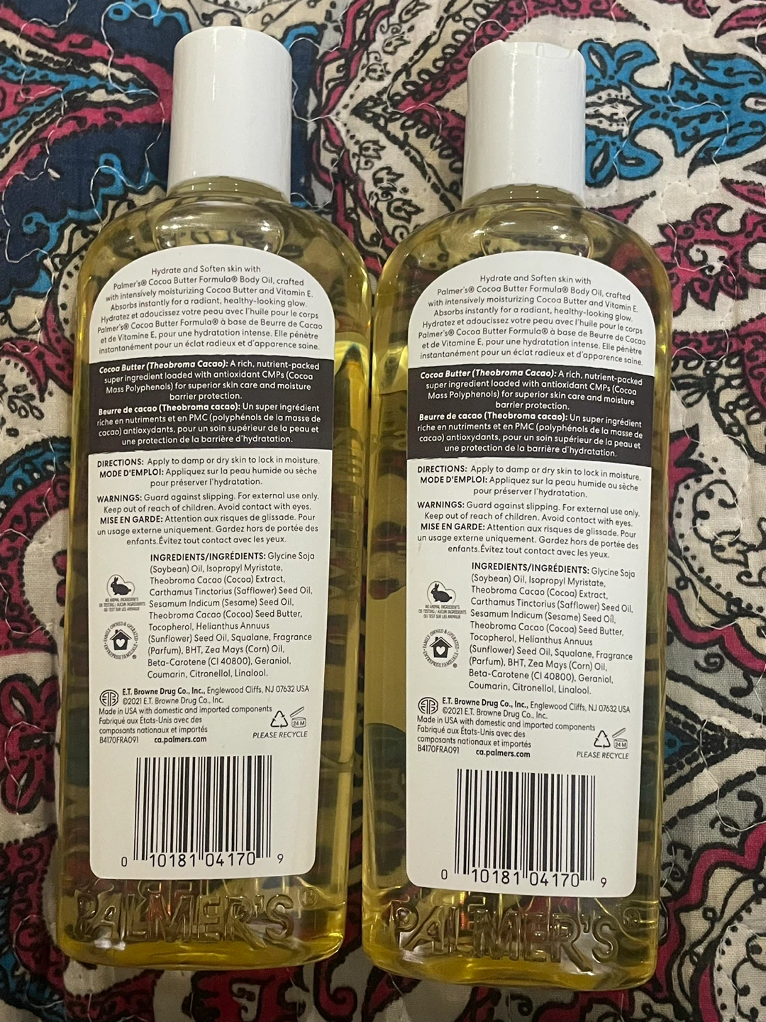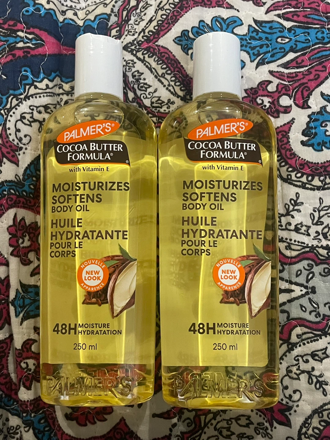 I'm selling two bottles of Palmer's Cocoa Butter Formula Body Oil. Each bottle contains 250ml of hydrating oil that moisturizes and softens skin. It absorbs instantly for radiant, healthy-looking skin. Perfect for daily use to keep your skin feeling soft and supple!
