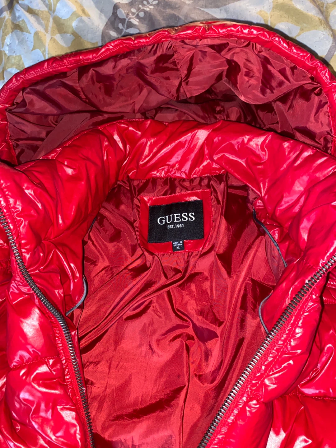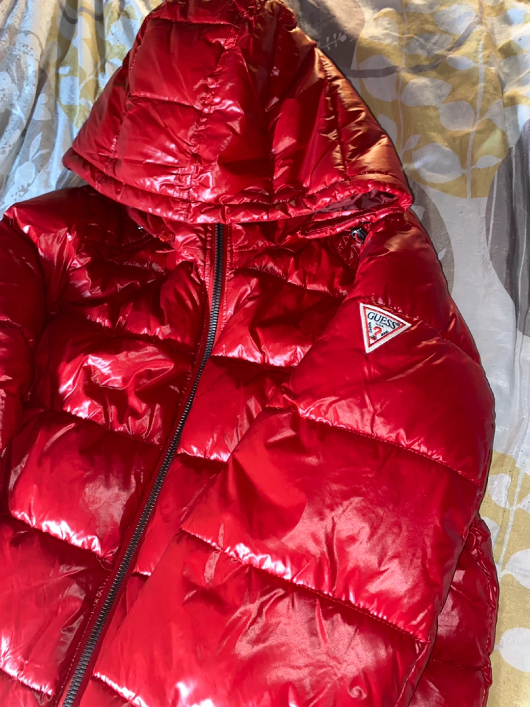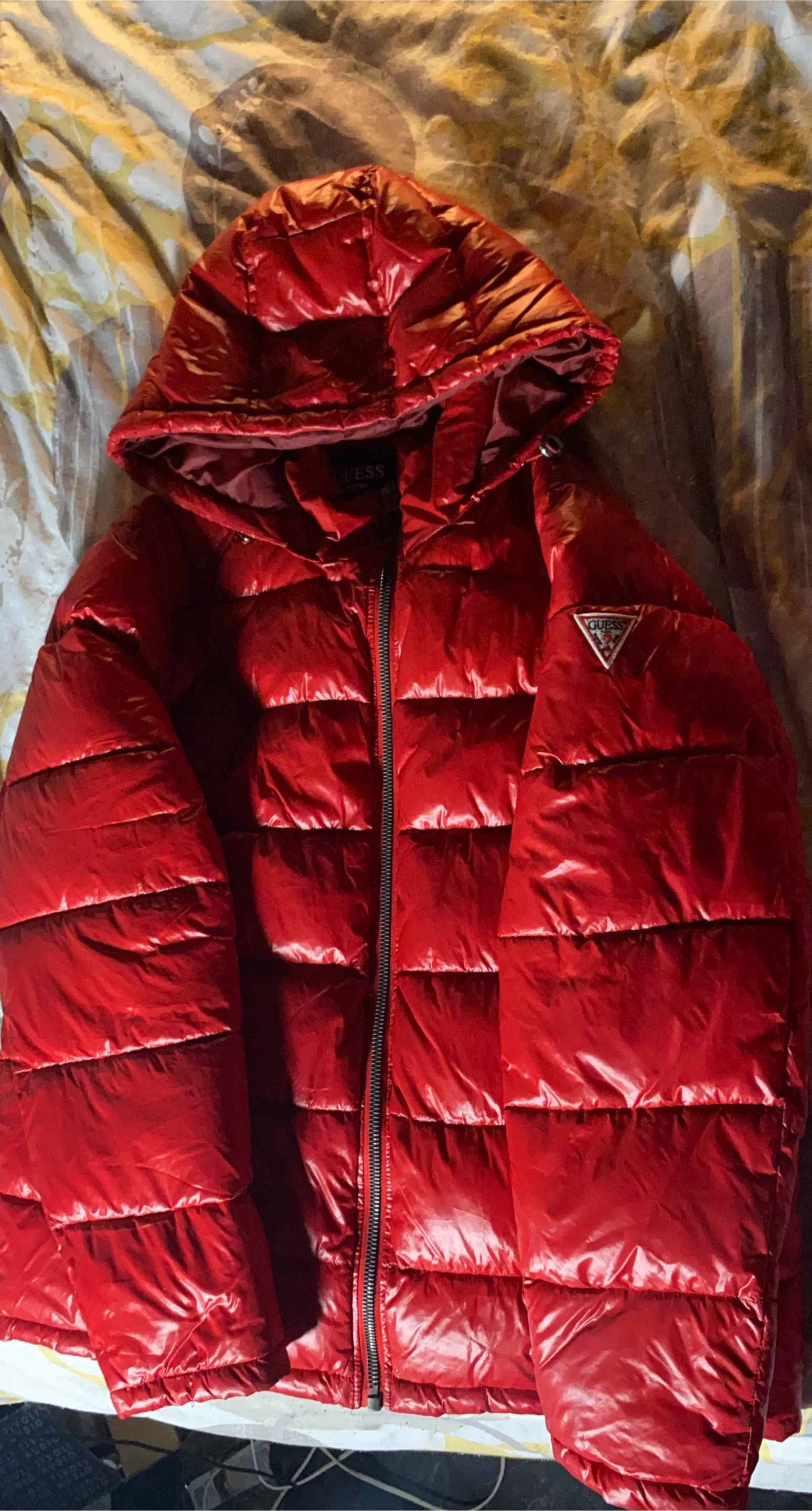 Guess red puffer jacket! Guess logo on the sleeve. Perfect for staying warm and fashionable during the colder months (unisex) Barely worn (still in great condition) Name your price (first come first serve)