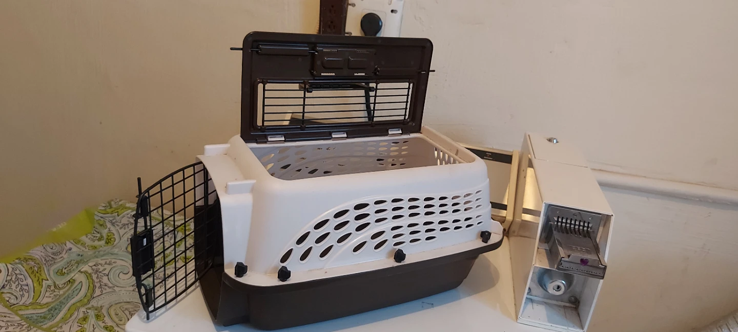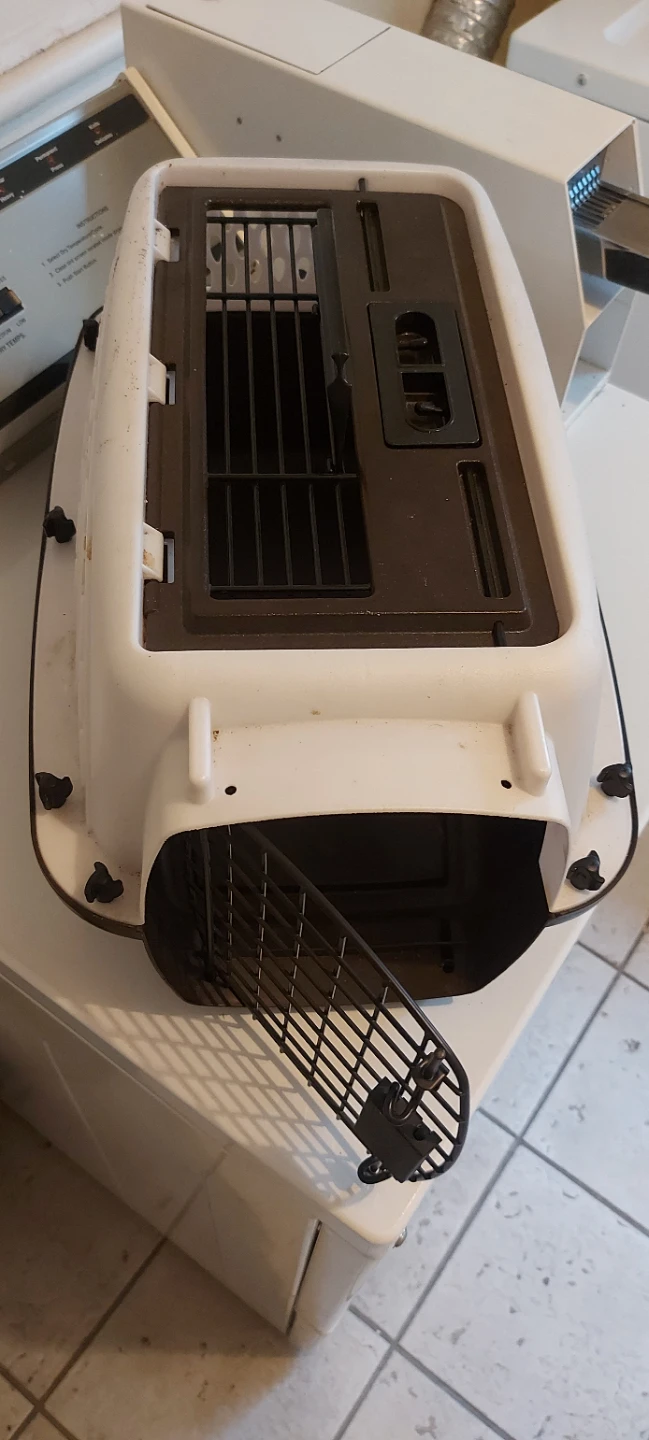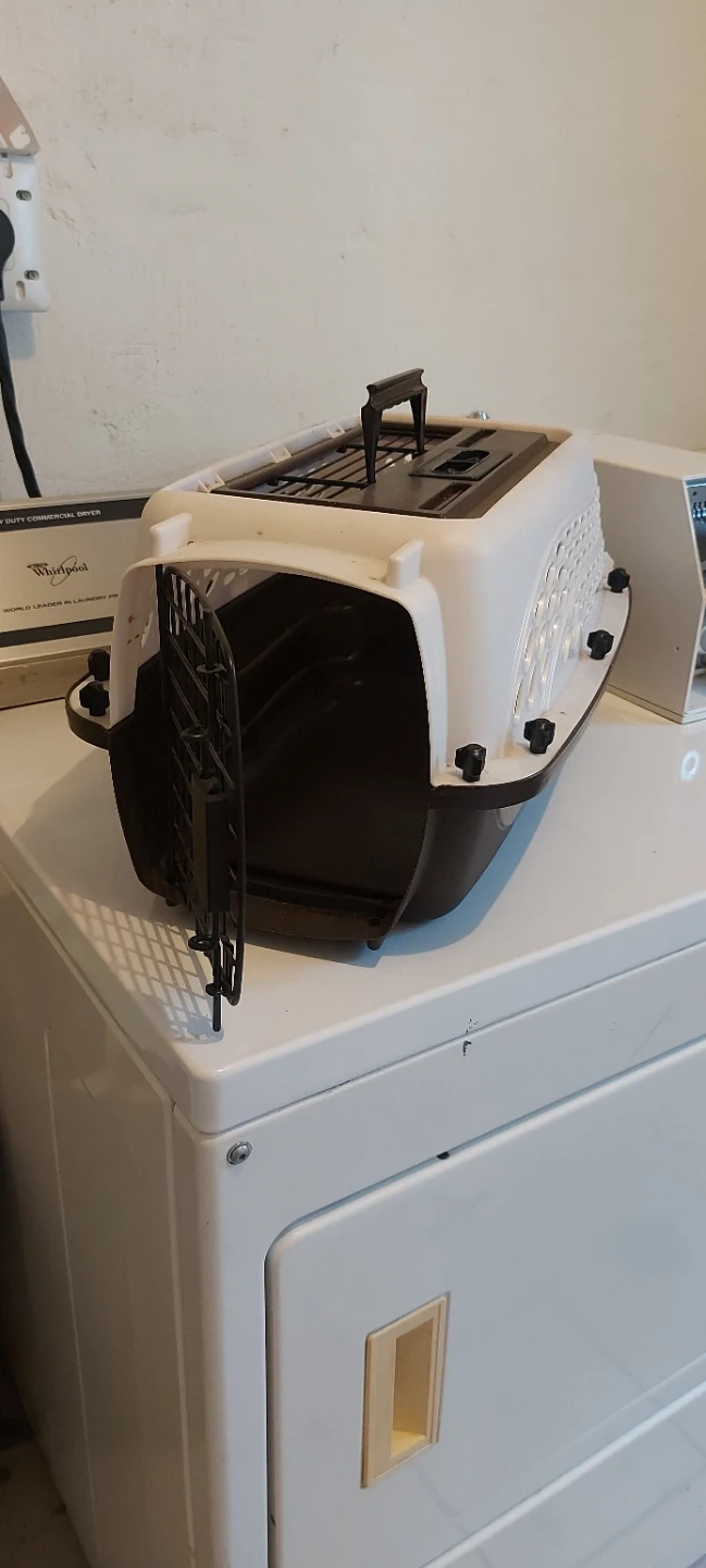 Selling a pet carrier in great condition! It's perfect for transporting your furry friend safely and comfortably. The carrier is sturdy and well-ventilated, ensuring your pet's comfort during travel. It features a secure door and a convenient handle for easy carrying. Ready for a new adventure! Great for small dog or regular cat. 18.5 X11x11 inches