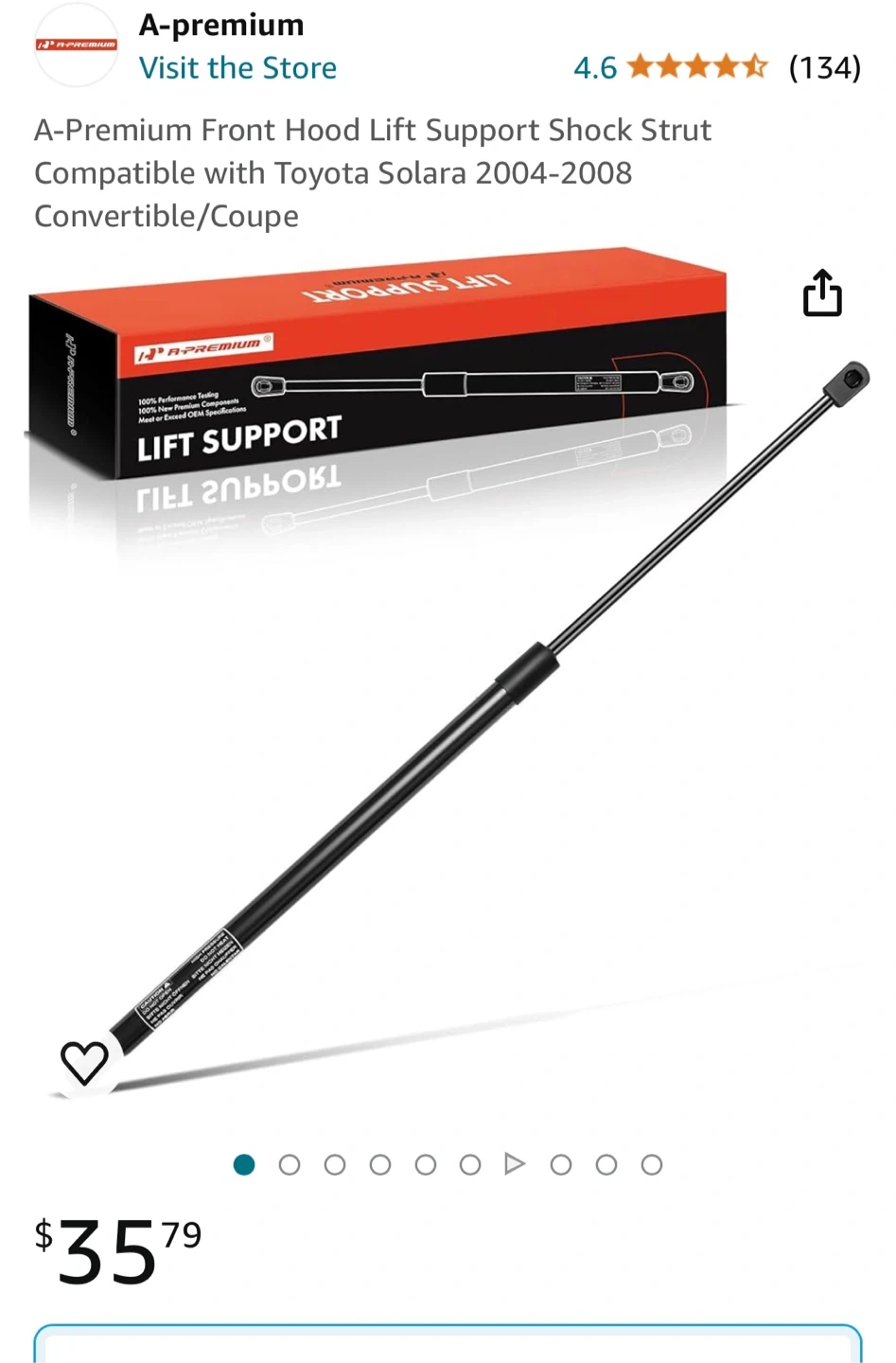 Buy & SellA-Premium Front Hood Lift Support - Toyota SolaraA-Premium Front Hood Lift Support - Toyota Solara$9One pair includedConditionNewWHERE TO MEETCheck LocationView MapSELLERDanaEastgate Square1298 reviews0 chats·0 favorites·3 viewsSEND CHAT TO SELLERHi Dana! I’m interested in your listing.Hi Dana! I’m interested in your listing.Get the Karrot app to chatSign In to chat
