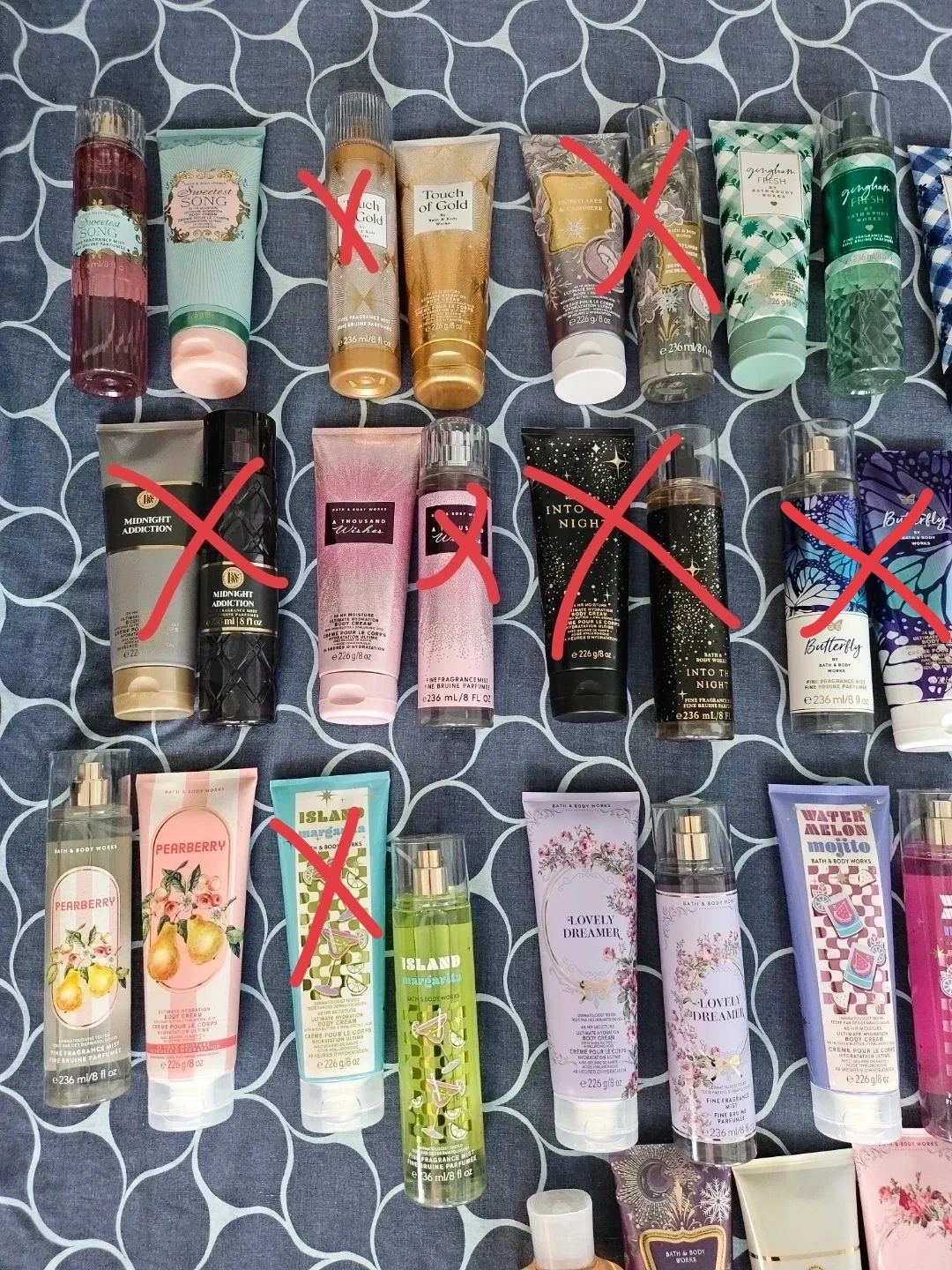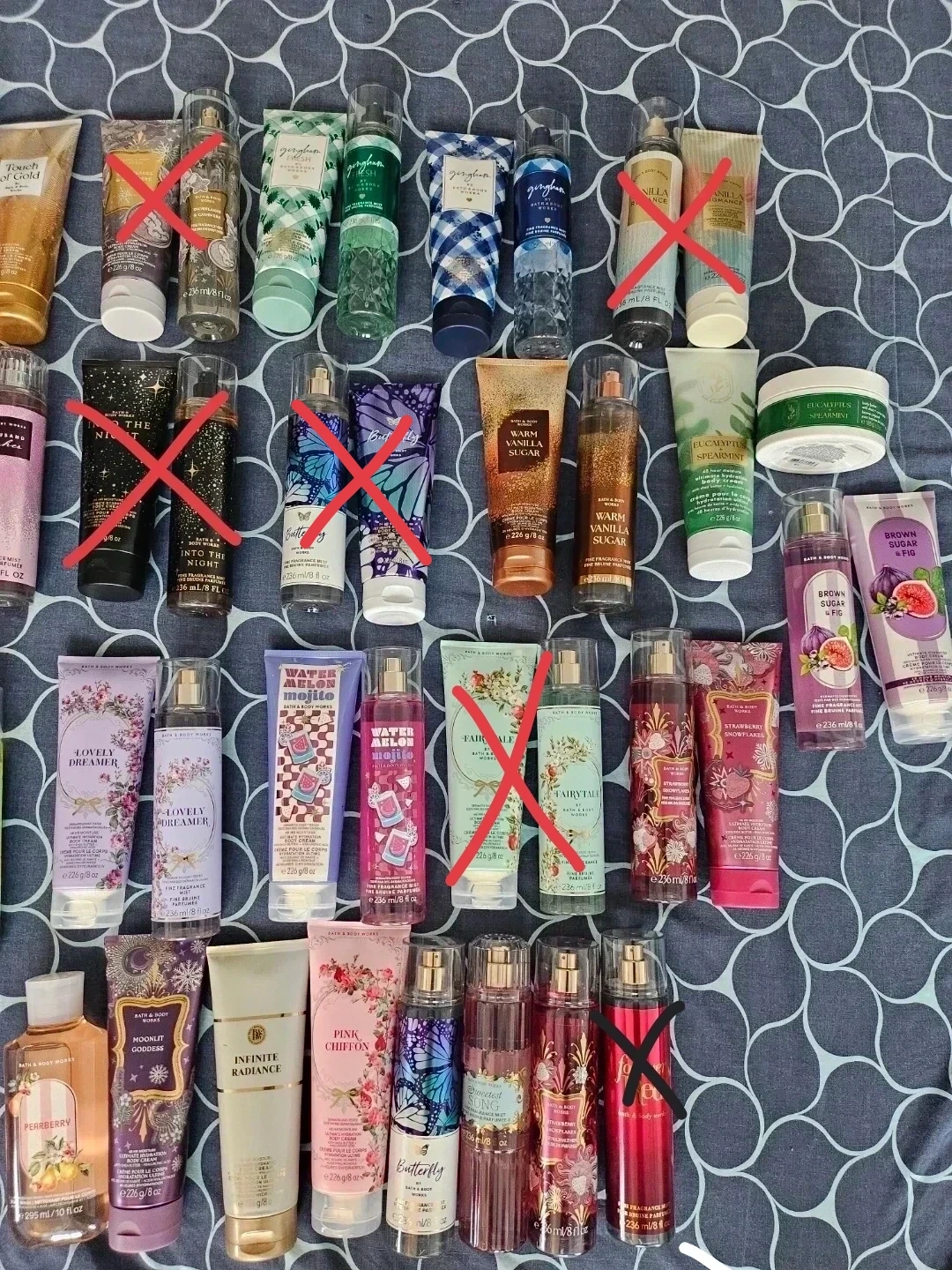 Selling a variety of Bath & Body Works body creams and fine fragrance mists. There's a bunch of different scents to choose from!