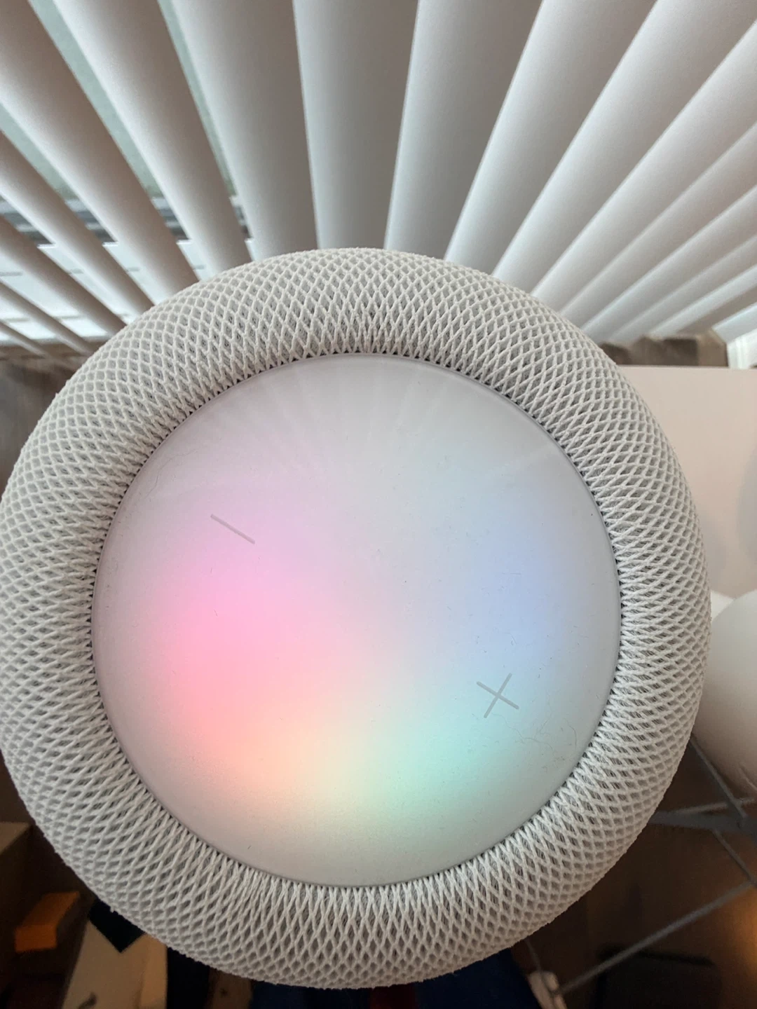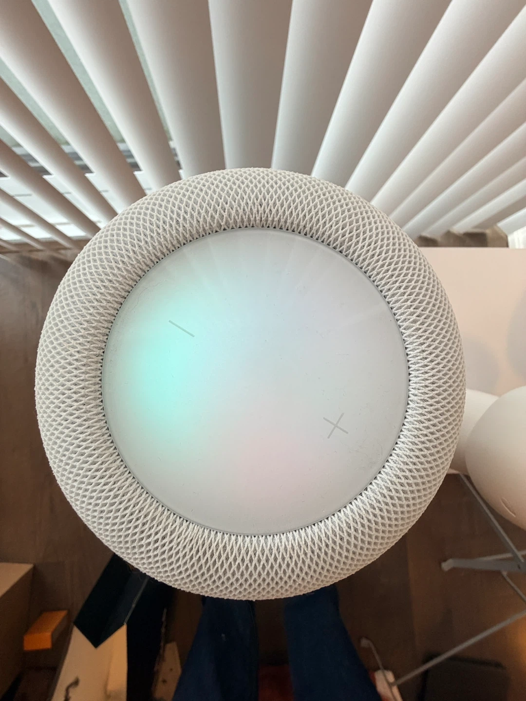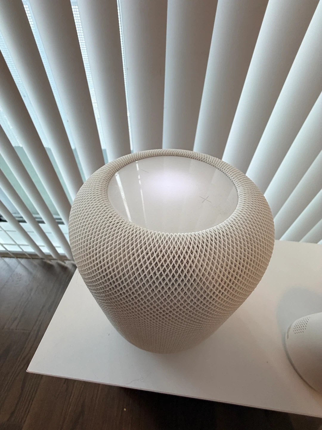 Selling an Apple HomePod in white. It's in great condition and ready to fill your space with amazing sound! It has a sleek design and delivers rich, immersive audio. Perfect for any room in your home!