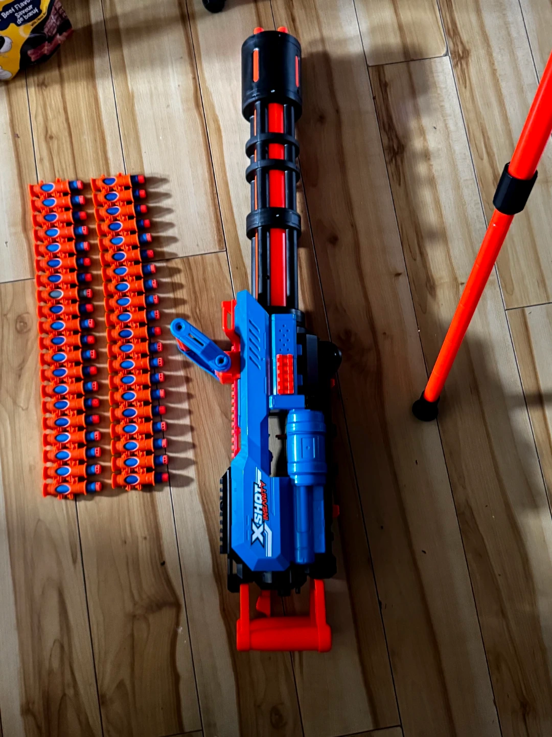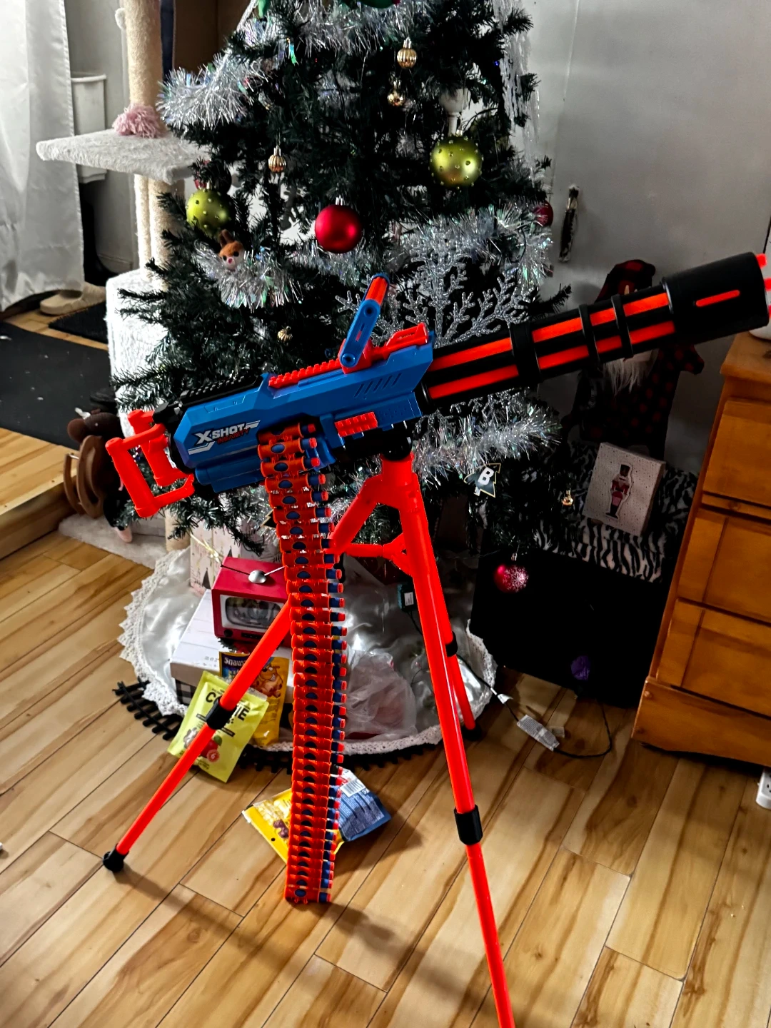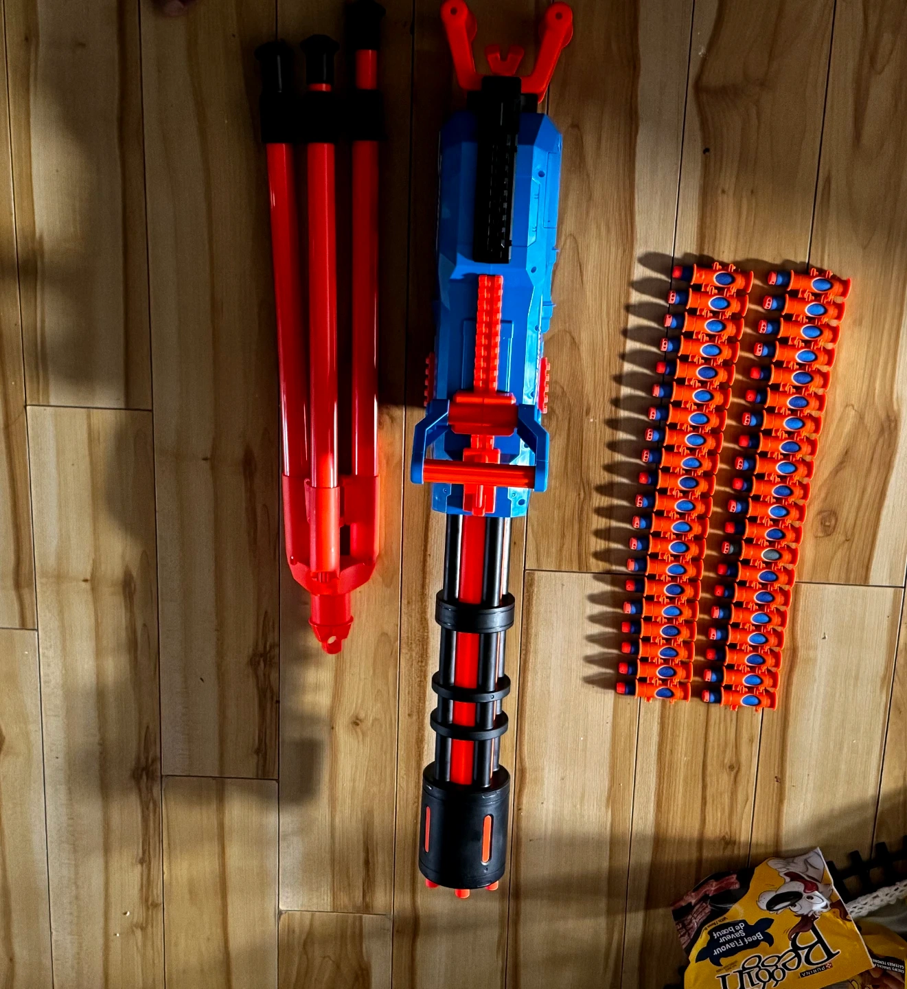 I'm selling this beautiful gattling gun (bullets are included! But some had to be replaced by a different brand due to my cat destroying them...)
