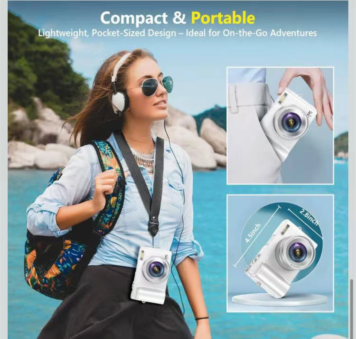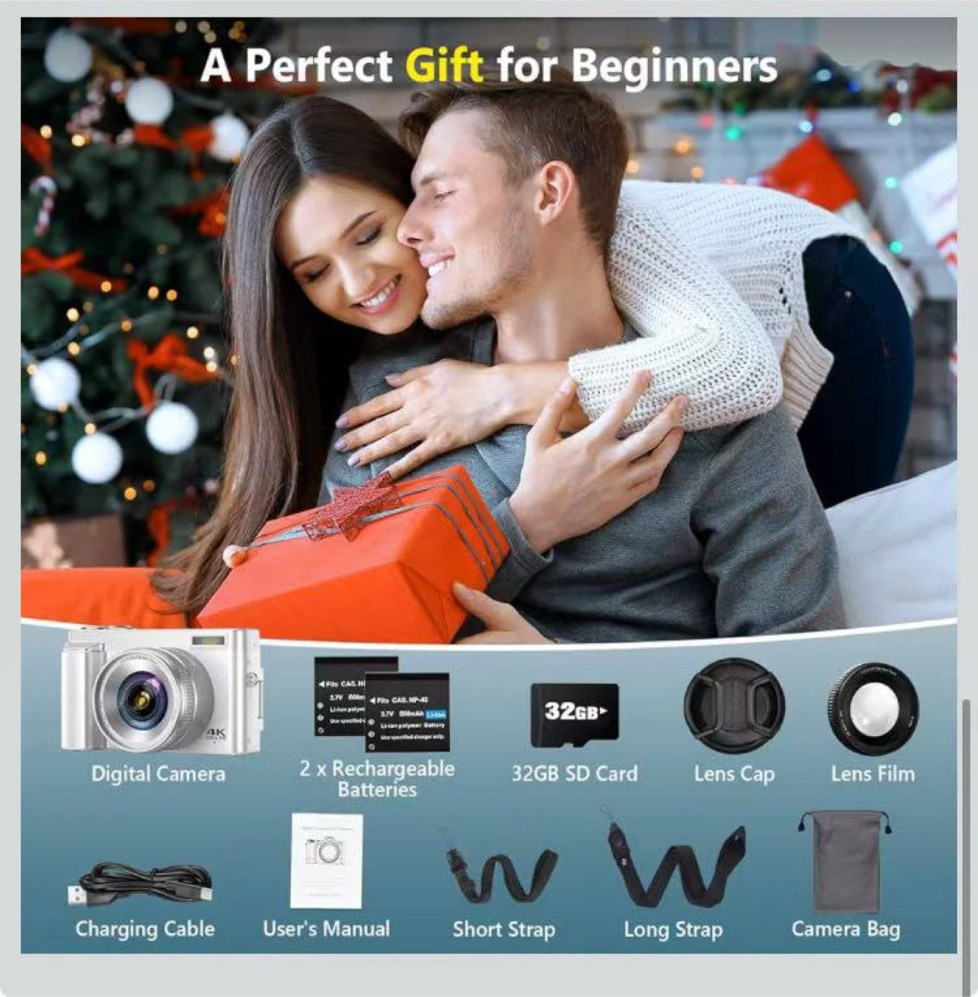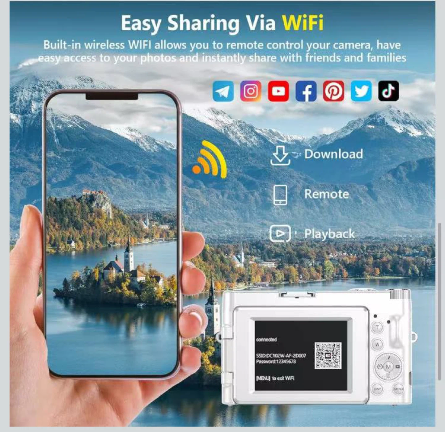 4K Digital Camera for Photography Autofocus, 64MP WiFi Vlogging Camera for YouTube with 2 Batteries, SD Card, 3" 180°Flip Screen Selfie Compact Travel Camera for Teens with 16X Zoom, Anti-Shake, White