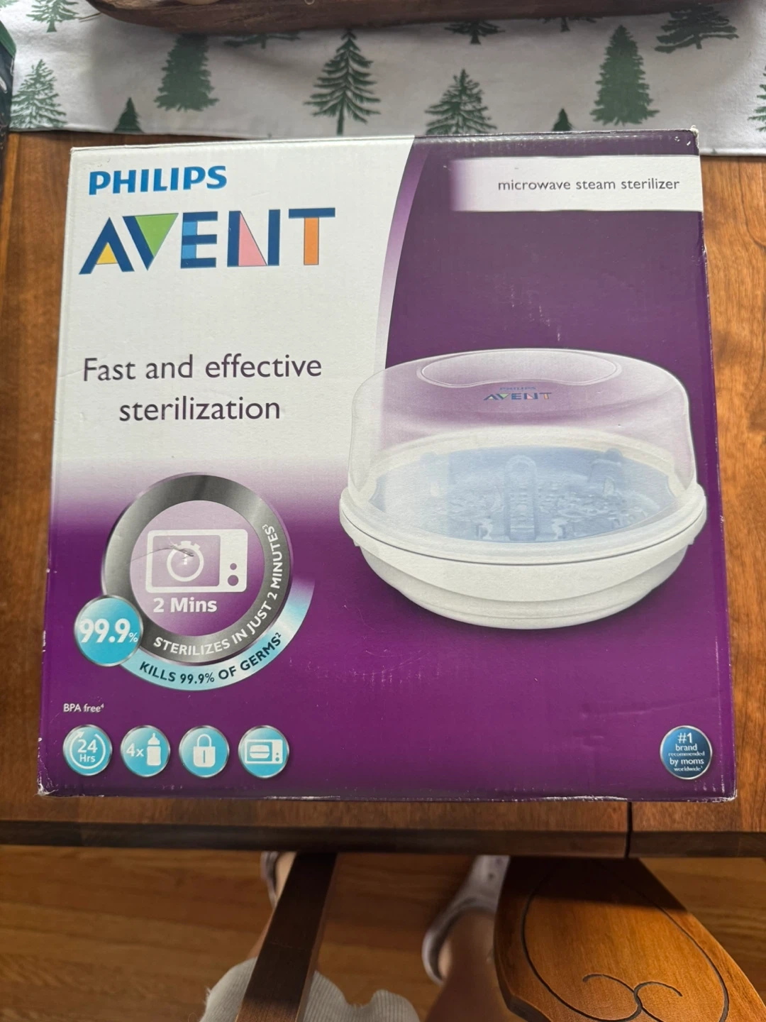 Selling a Philips Avent microwave steam sterilizer! It offers fast and effective sterilization, killing 99.9% of germs in just 2 minutes. It's also BPA free and can keep items sterile for up to 24 hours. Great for sterilizing baby bottles and other small items!