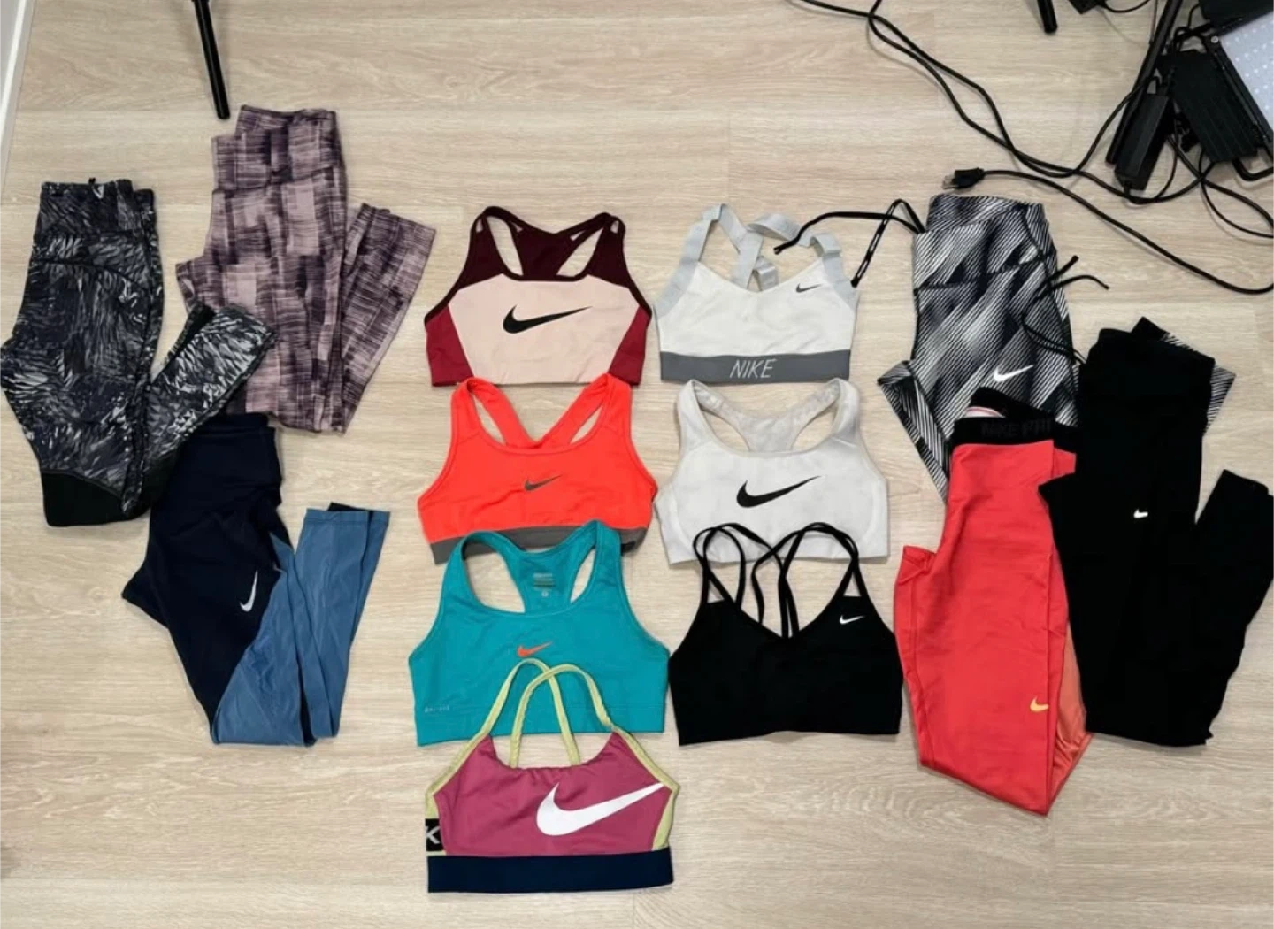 A great bundle of Nike activewear! Includes a mix of leggings and sports bras in various colours. All in XS and Small. Perfect for your workouts or everyday athleisure looks.
