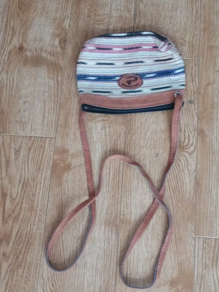 Here's a cute kids' beanie from PENDLETON! It features a colourful striped pattern and tie strings.