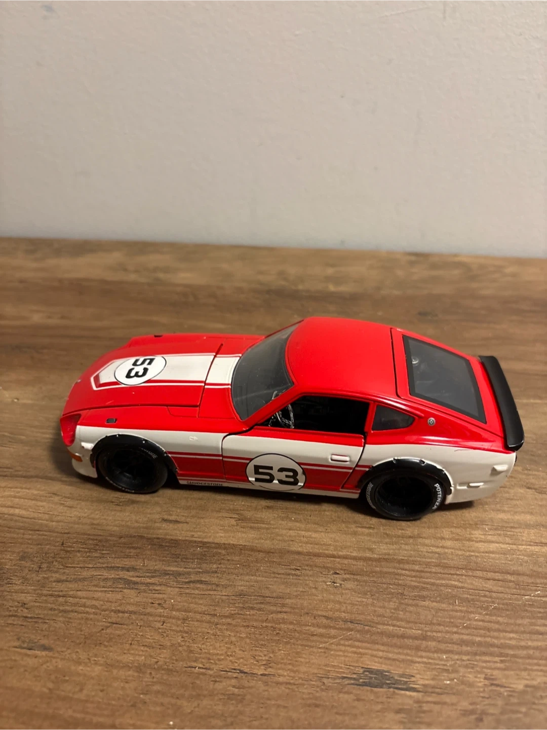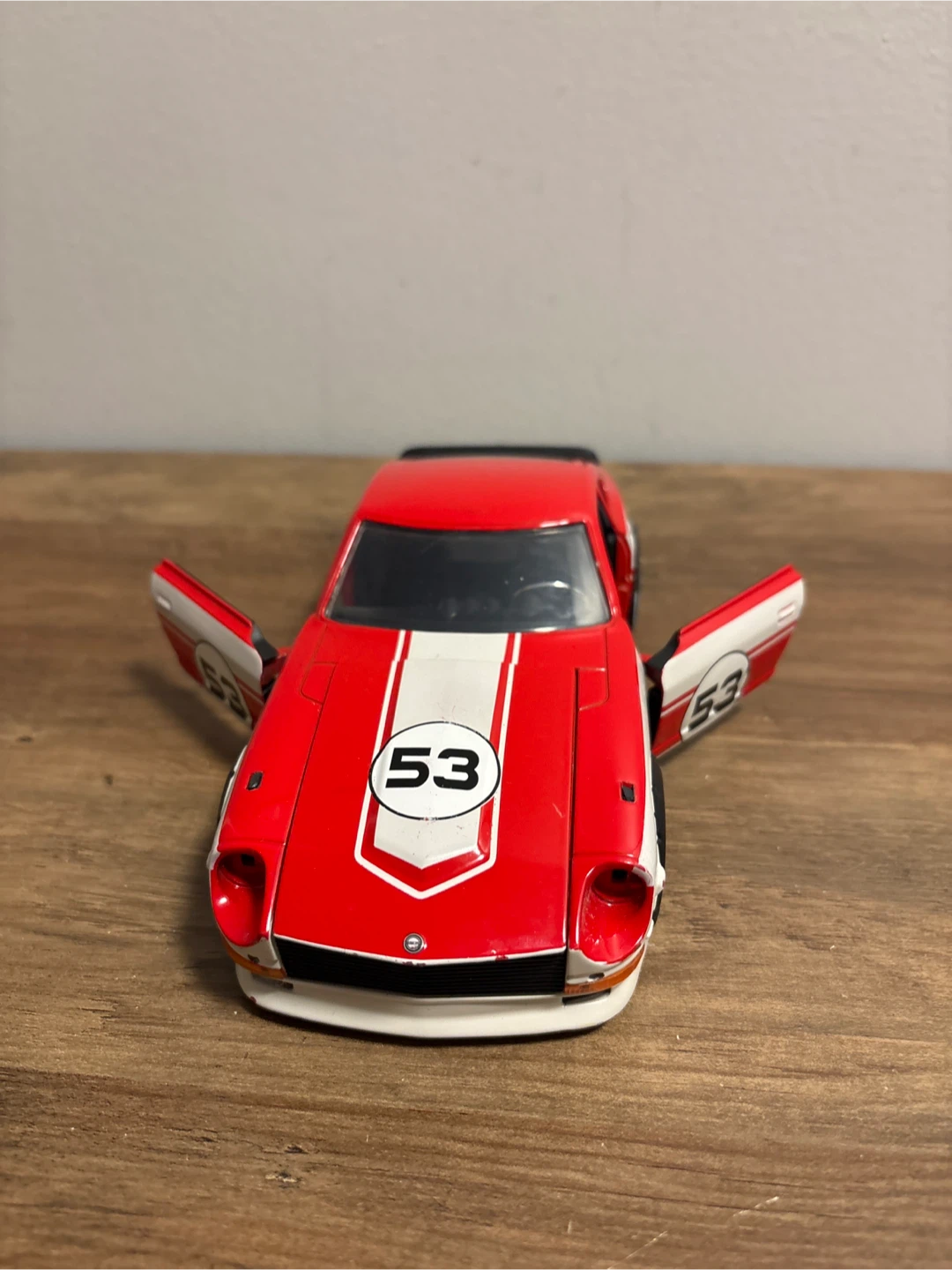 Selling a cool red and white diecast model of 1972 Datsun240Z, sporting the number 53! It's in great shape and would make a fantastic addition to any car enthusiast's collection