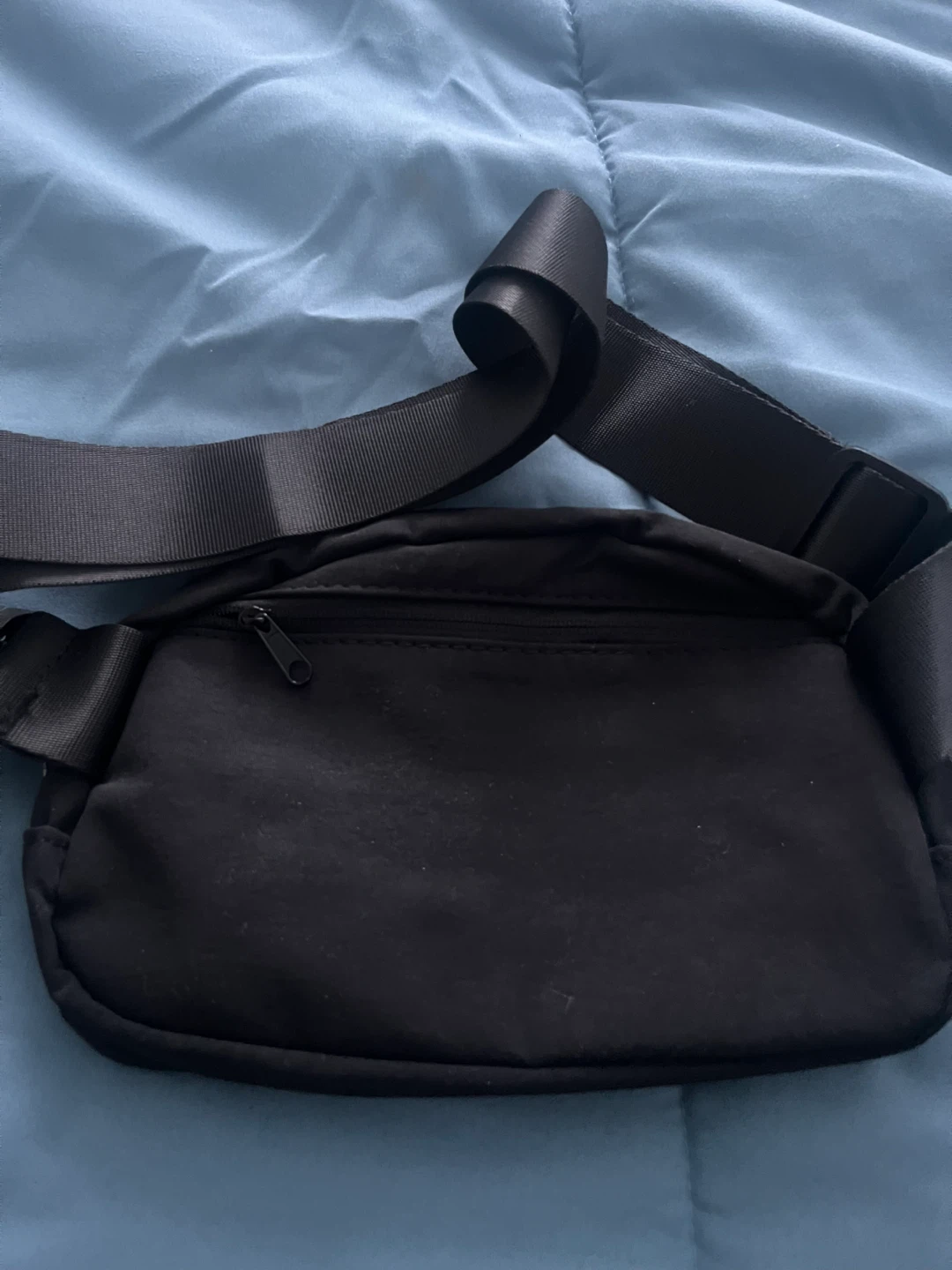 New Halara bag with adjustable strap. Never been used. Main compartment has mesh pockets, and there is a zipped pocket at the back. Can be worn as a belt bag or crossbody. 8.5” x 5.5”.