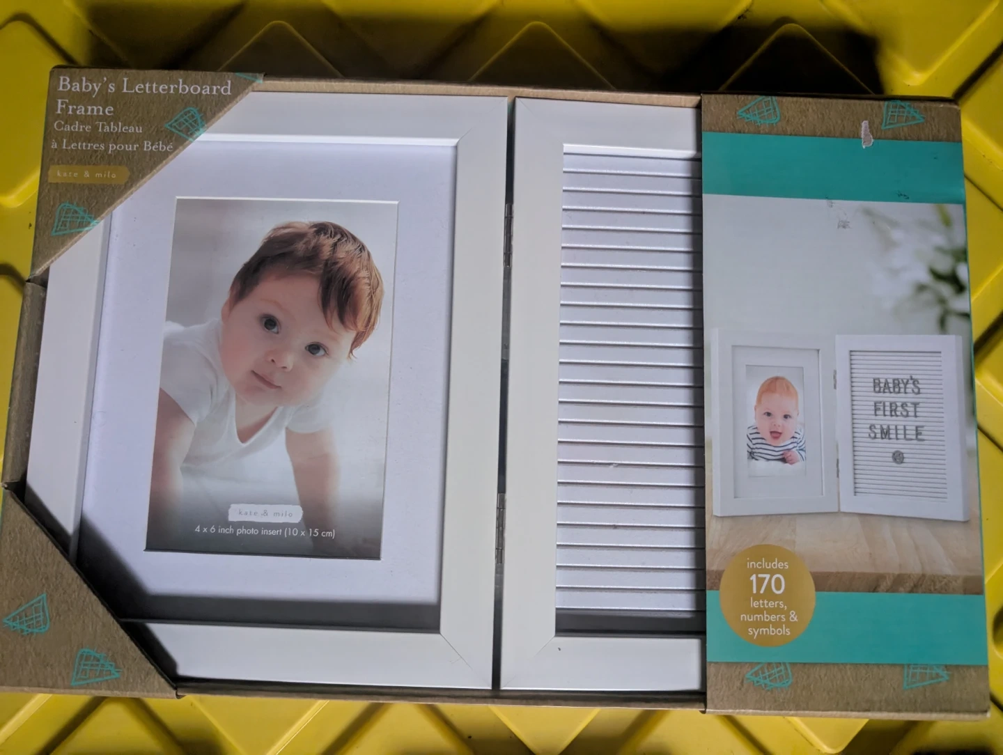 Selling a brand new Kate & Milo Baby's Letterboard Frame! It includes 170 letters, numbers, and symbols. The frame holds a 4x6 inch photo insert (10 x 15 cm). Perfect for capturing baby's first smile!