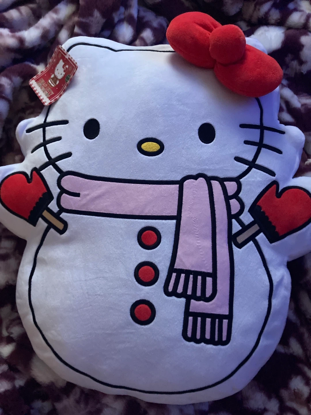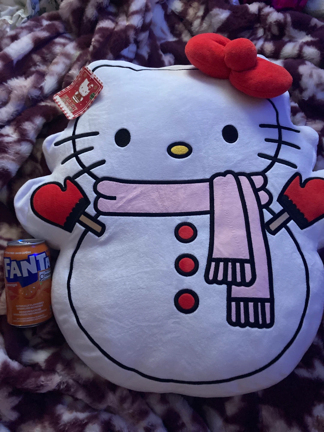 Selling a super cute Hello Kitty snowman plush! It's brand new with tags and ready to bring some winter cheer. Perfect for any Hello Kitty fan! Here is a representation of how big it is compared to a Fanta can!