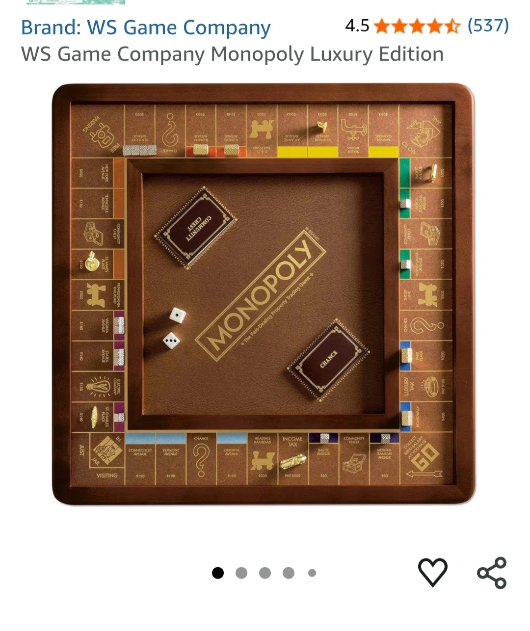 Selling a WS Game Company Monopoly Luxury Edition board game! It's a beautiful, high-quality version of the classic game. Perfect for family game nights or as a gift for the Monopoly enthusiast in your life